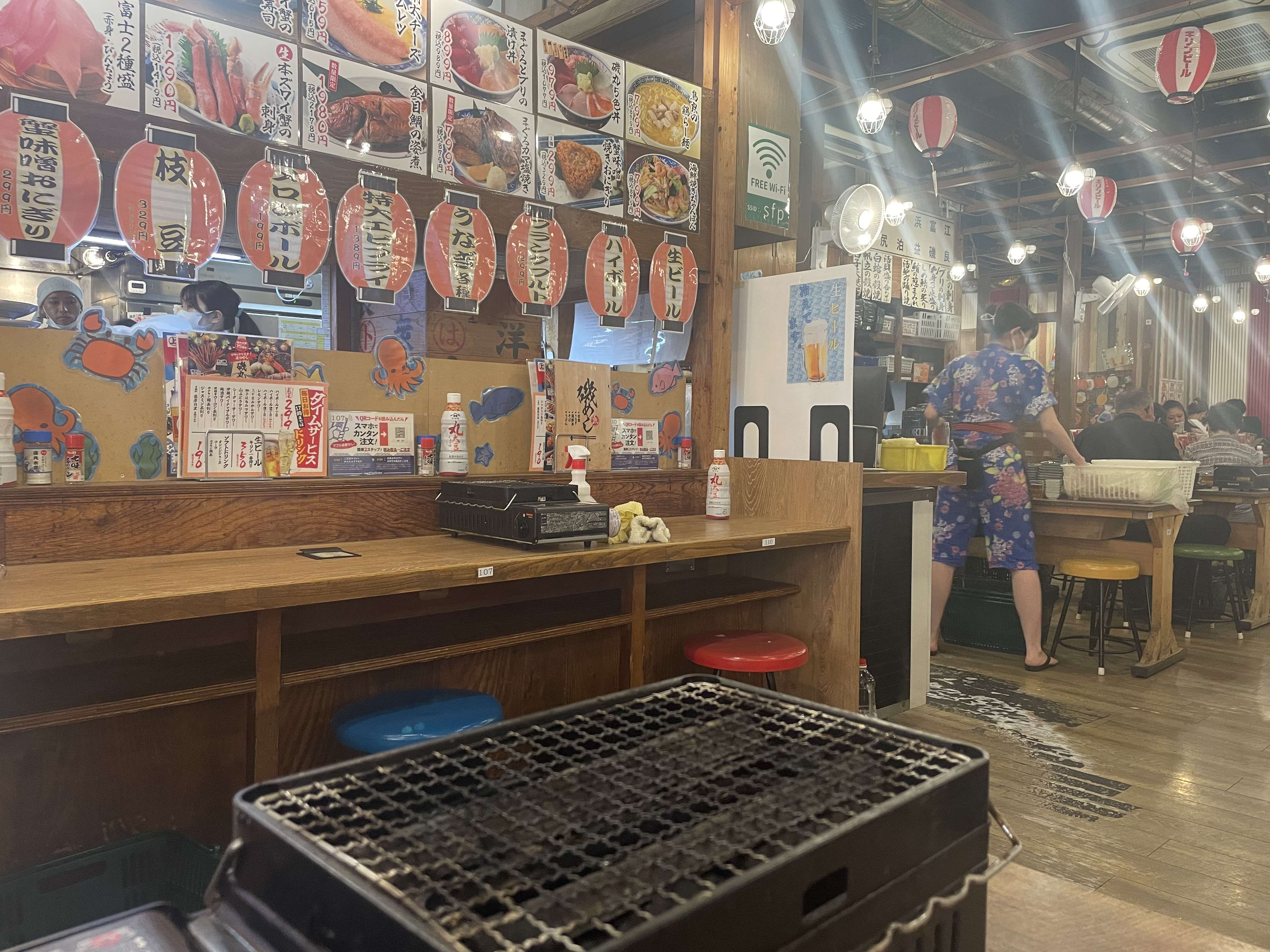 店内は、丸椅子にテーブルといった海の家を思い返すような感じ。威勢の良い店員さんの掛け声がかかります。