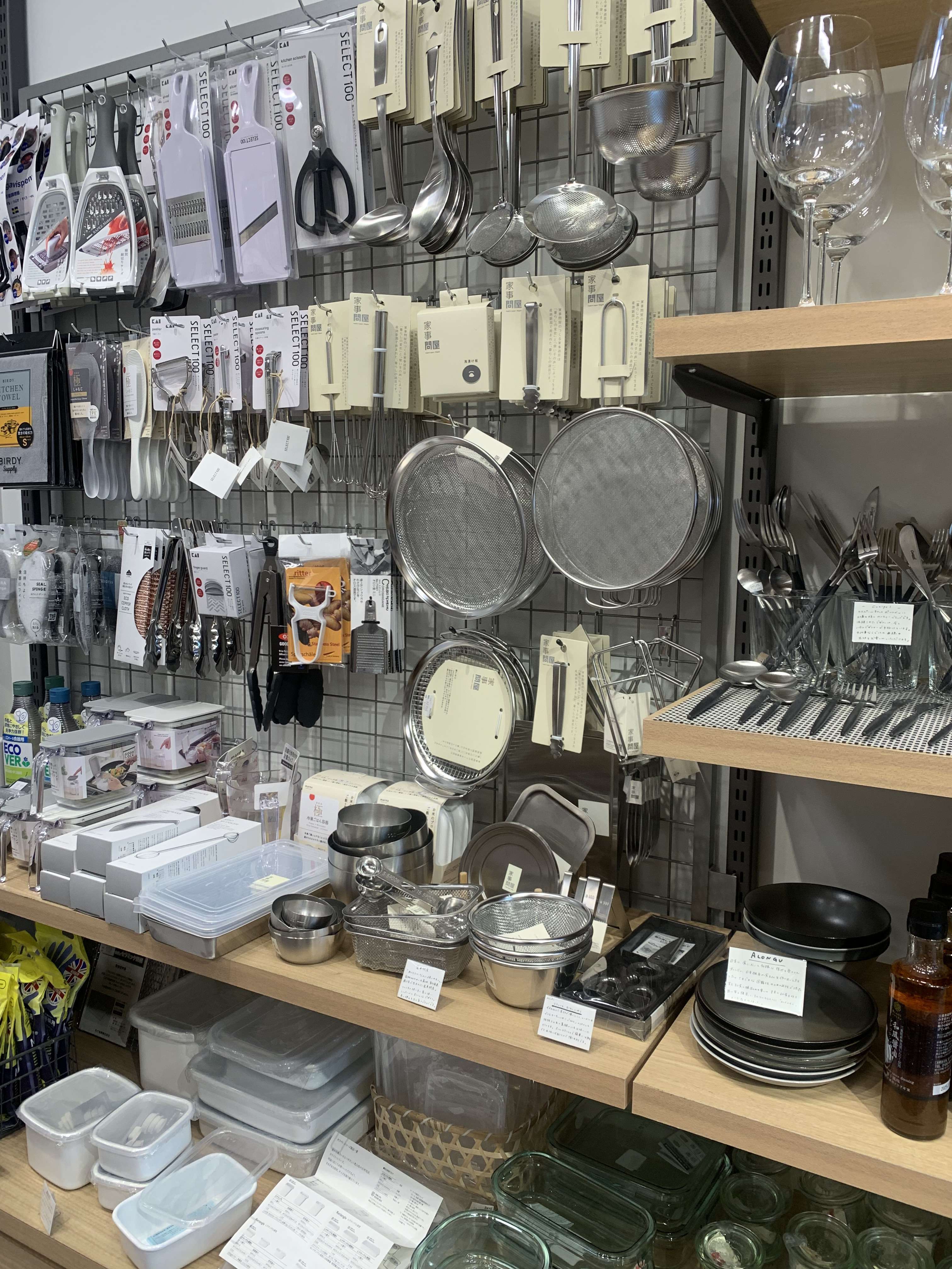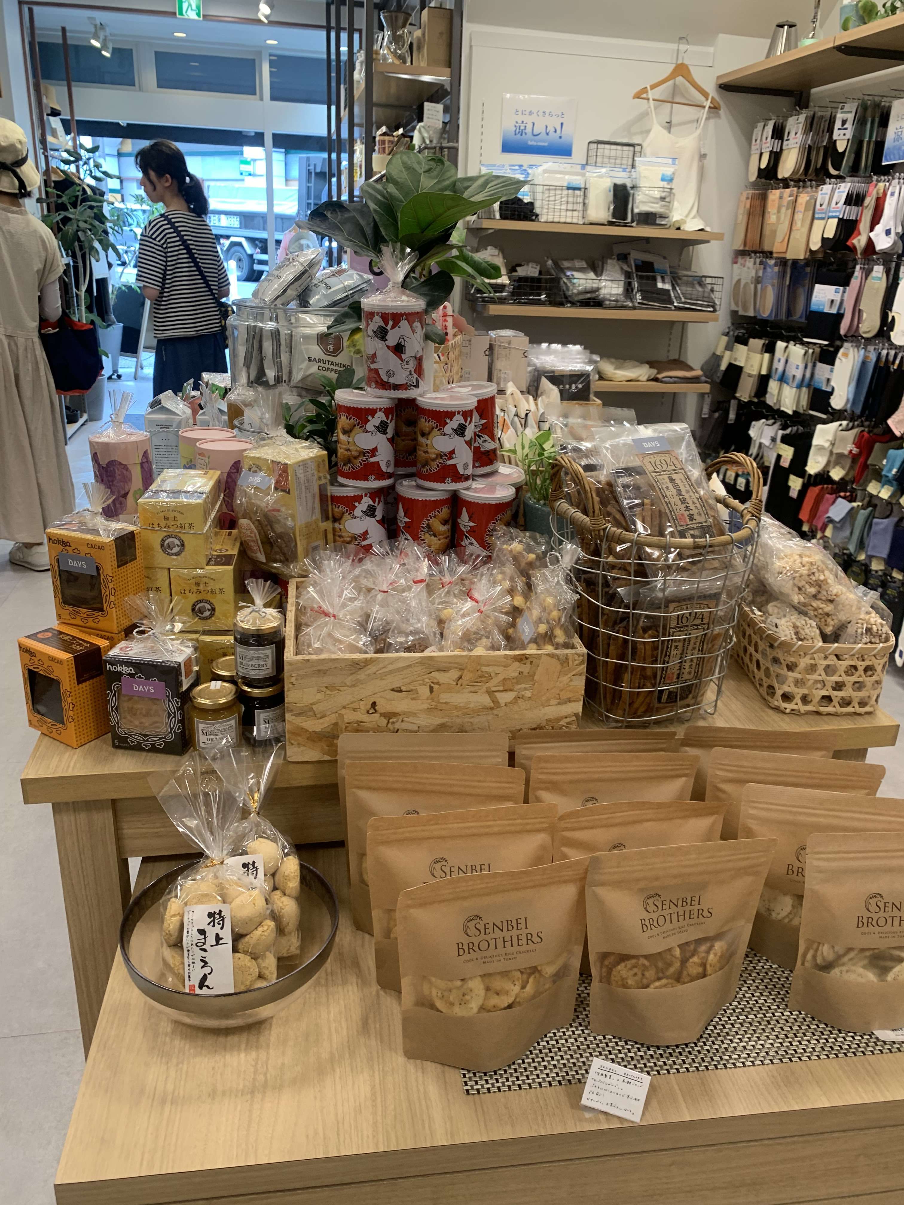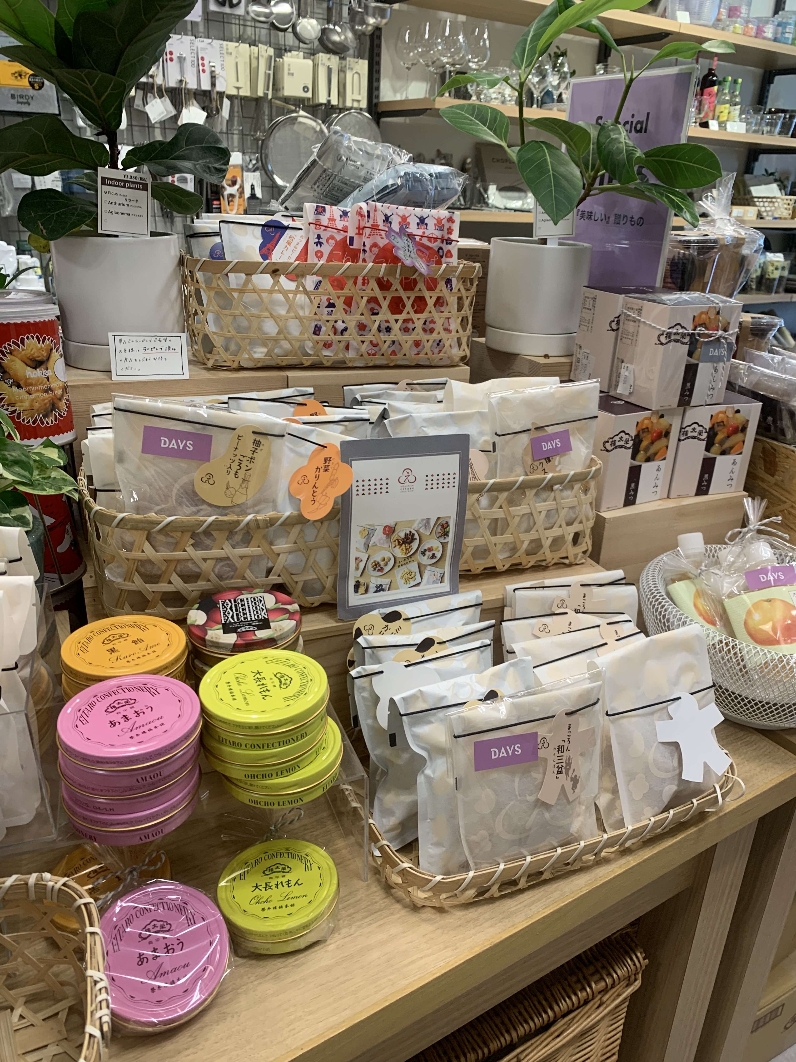中に入るとトレンドな調理器具からかわいいティーセット、靴下、子供服など盛りだくさんです。