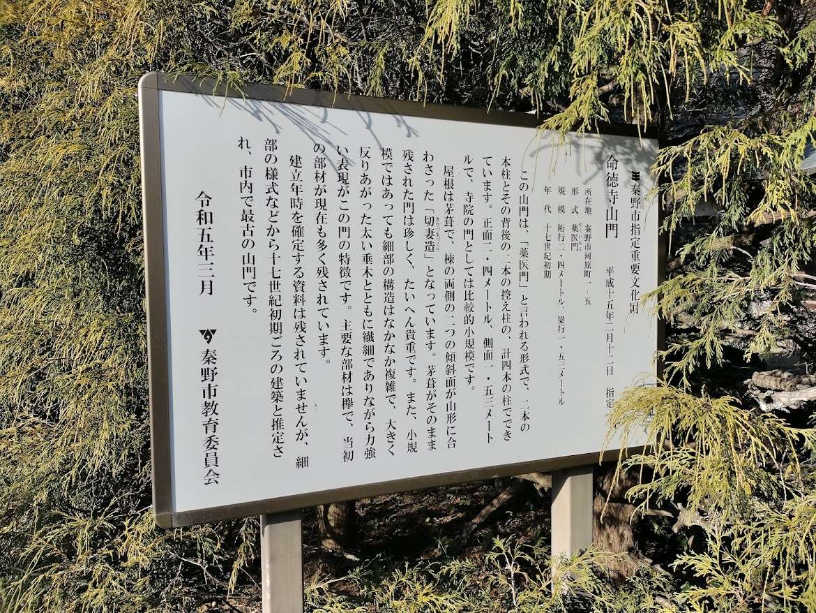 秦野市には、江戸時代初期に建築された茅葺き屋根の古い山門のあるお寺があります。