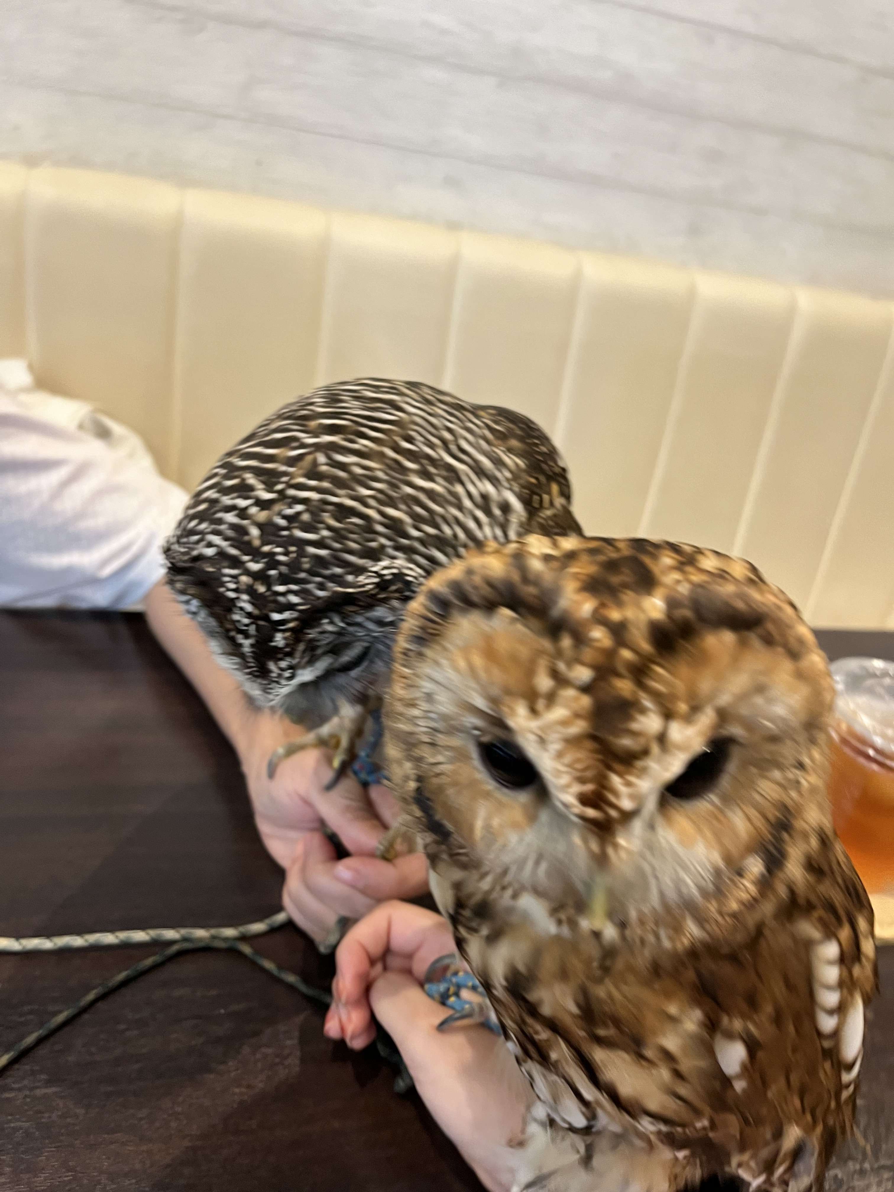 ドリンクを飲むのを忘れてフクロウたちと遊んでしまいますよ。