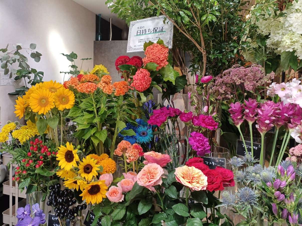 夏の店内はパァ~っと目が覚めるようなビビッドな色彩の花たちが。