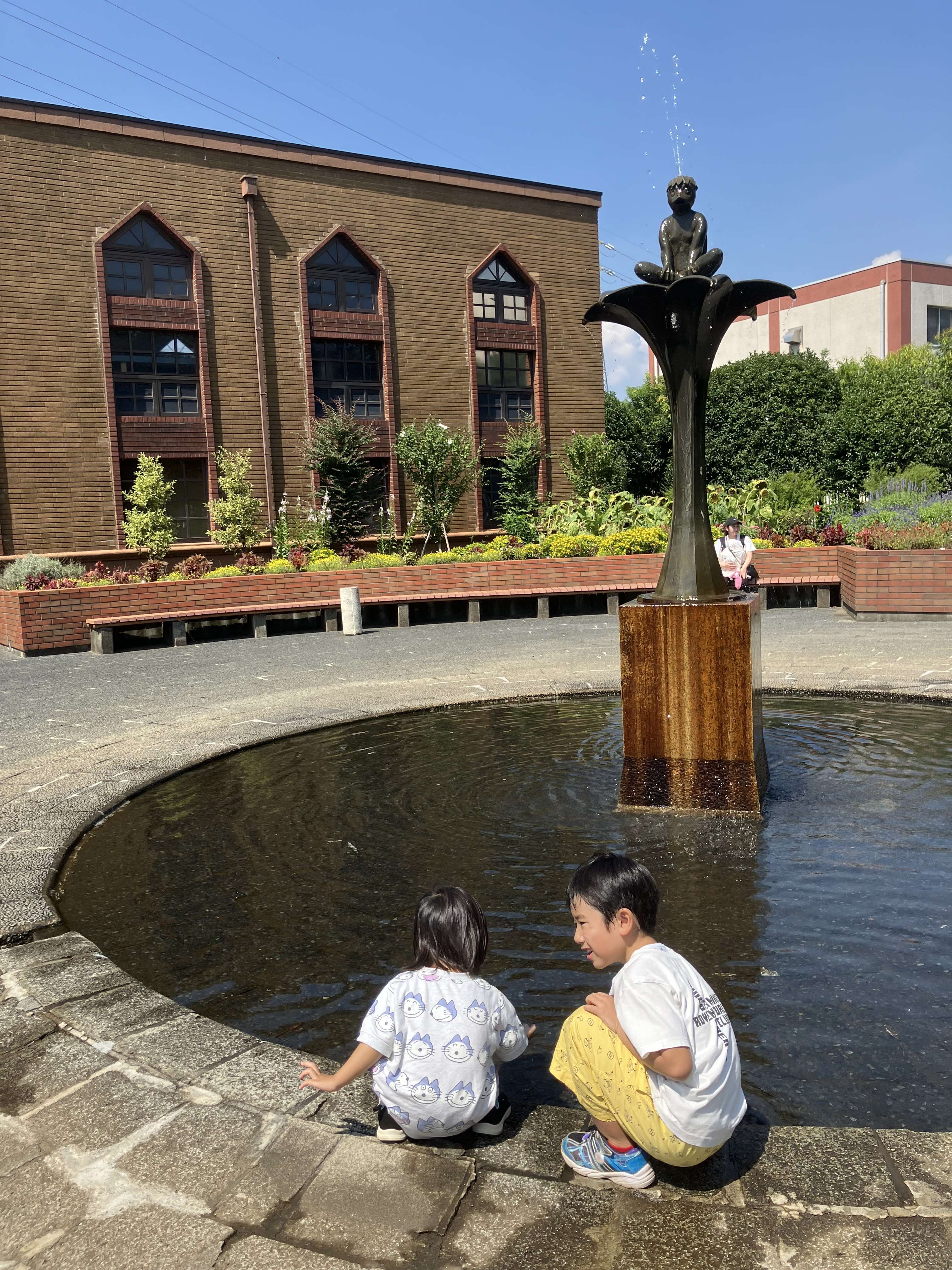 入り口の前には河童の噴水があります。水遊びする子がたくさんいました。