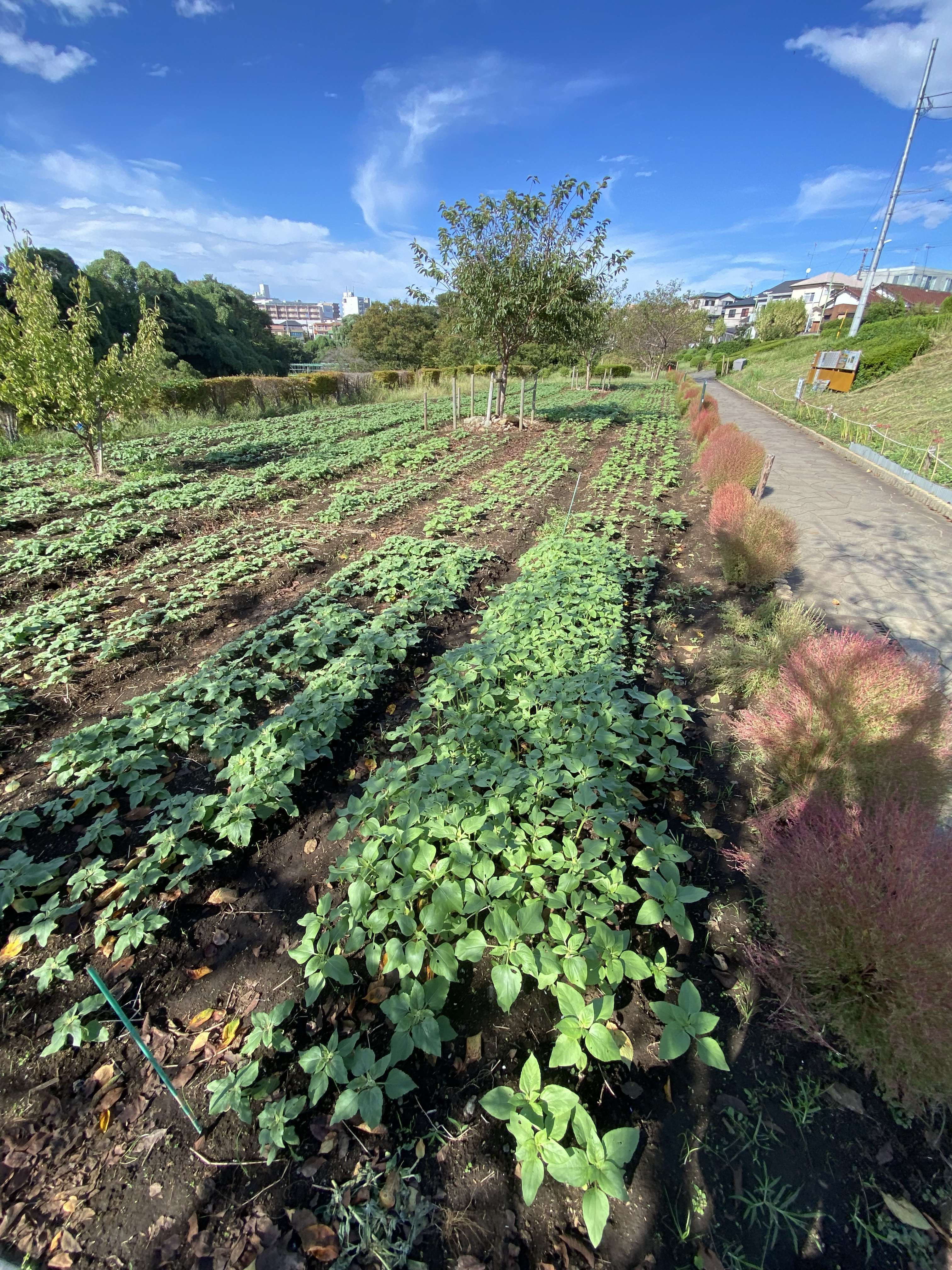10月7日月曜日現在の冬のひまわりの苗が大きく育ってきています