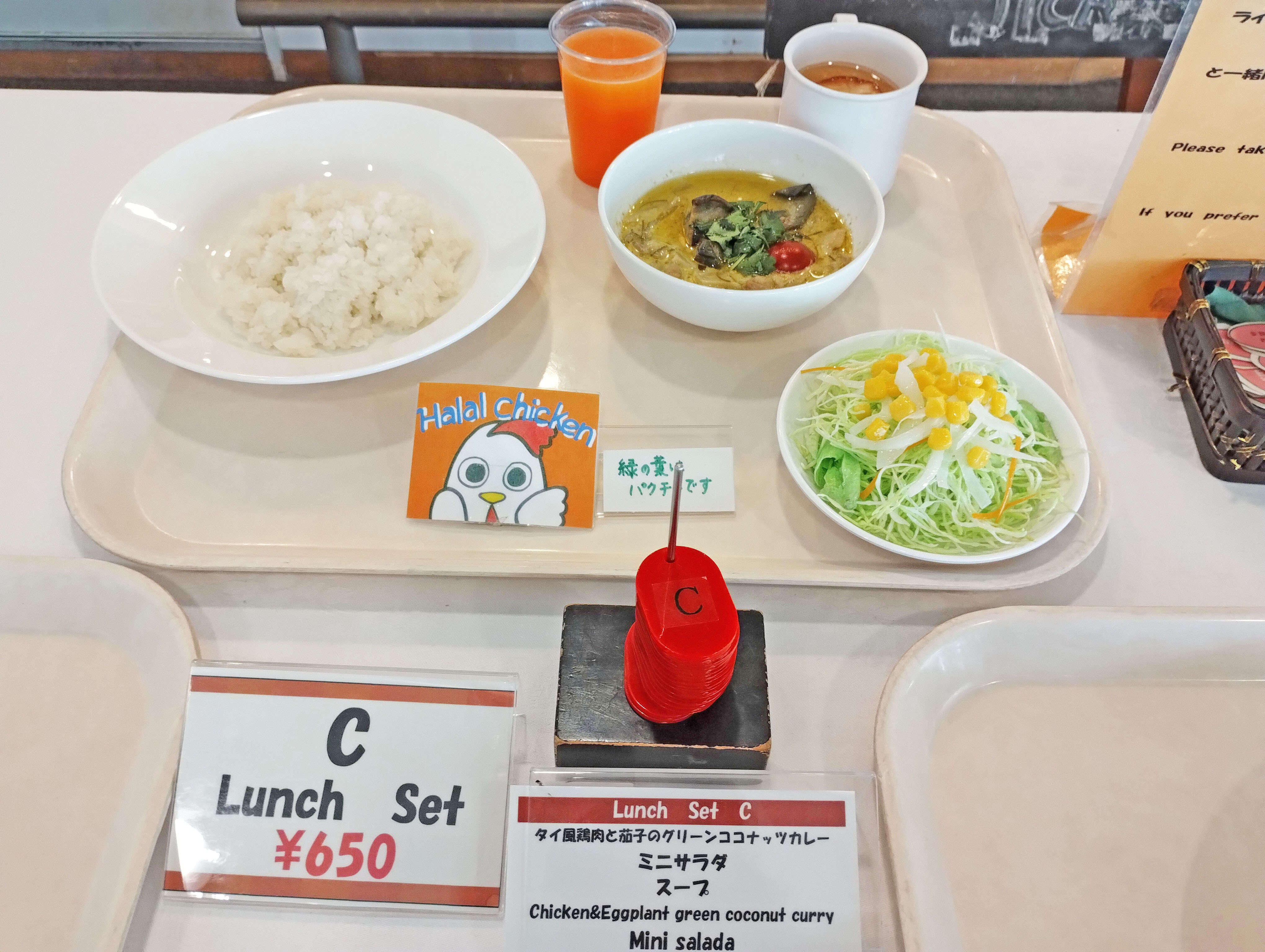 タイ風鶏肉と茄子のグリーンココナッツカレー(ミニサラダ、スープ付き)¥650