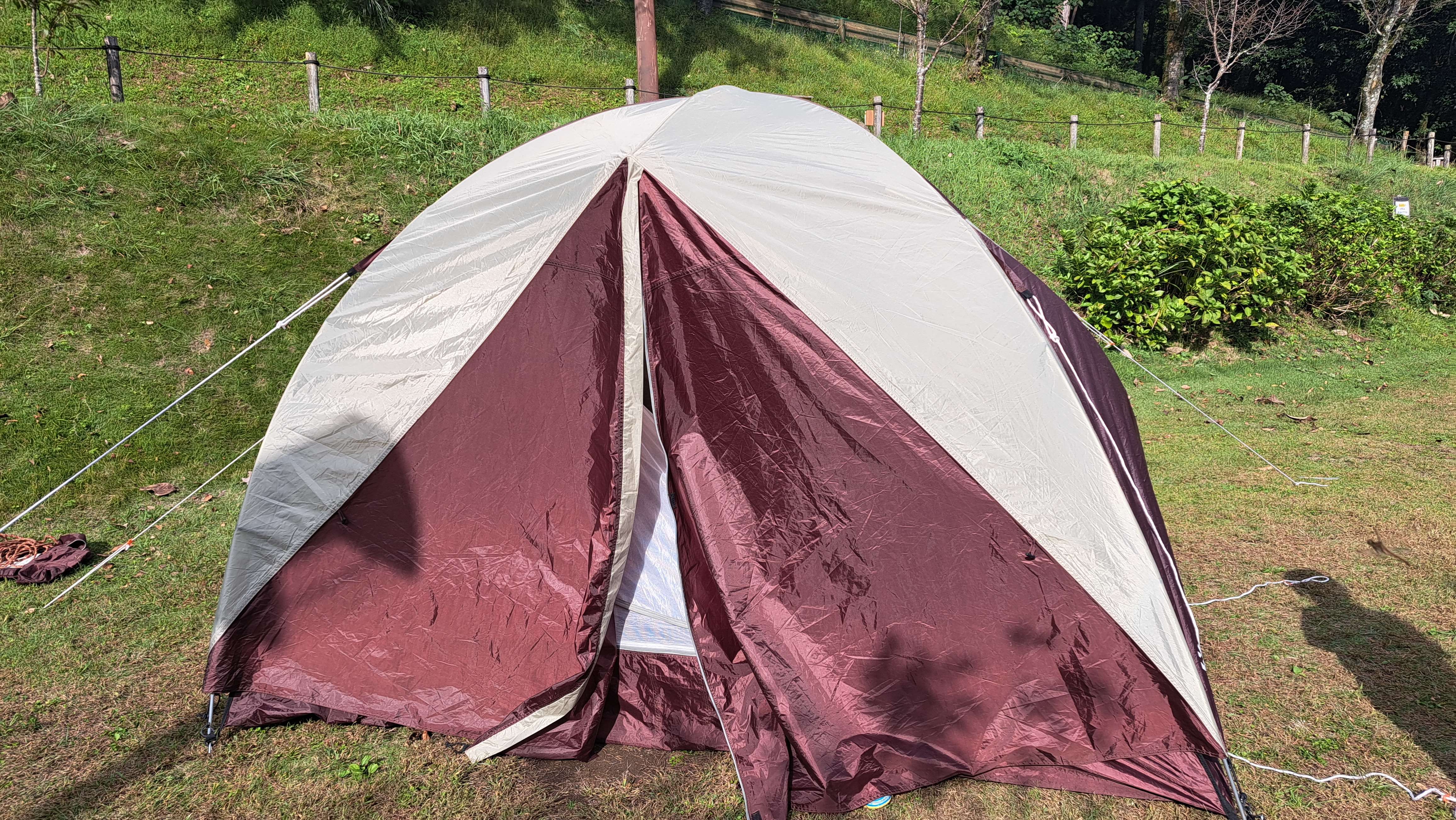 インストラクターの『やっさん』にテント部品の説明や、建て方、紐の結び方をレクチャーしていただきました。
