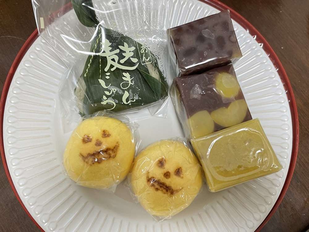見た目も可愛らしいハロウィンまんじゅうと大好物の麩まんじゅう!こしあん派です