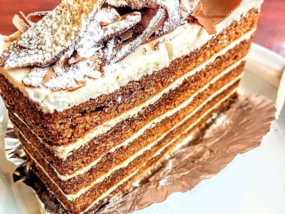 濃厚なコーヒー風味が口の中に広がり、ほのかな甘さが絶妙。ケーキの層が重なり合って、見た目も華やかで食べるのが楽しい。コーヒーとの相性も抜群で、最後まで満足感いっぱい。