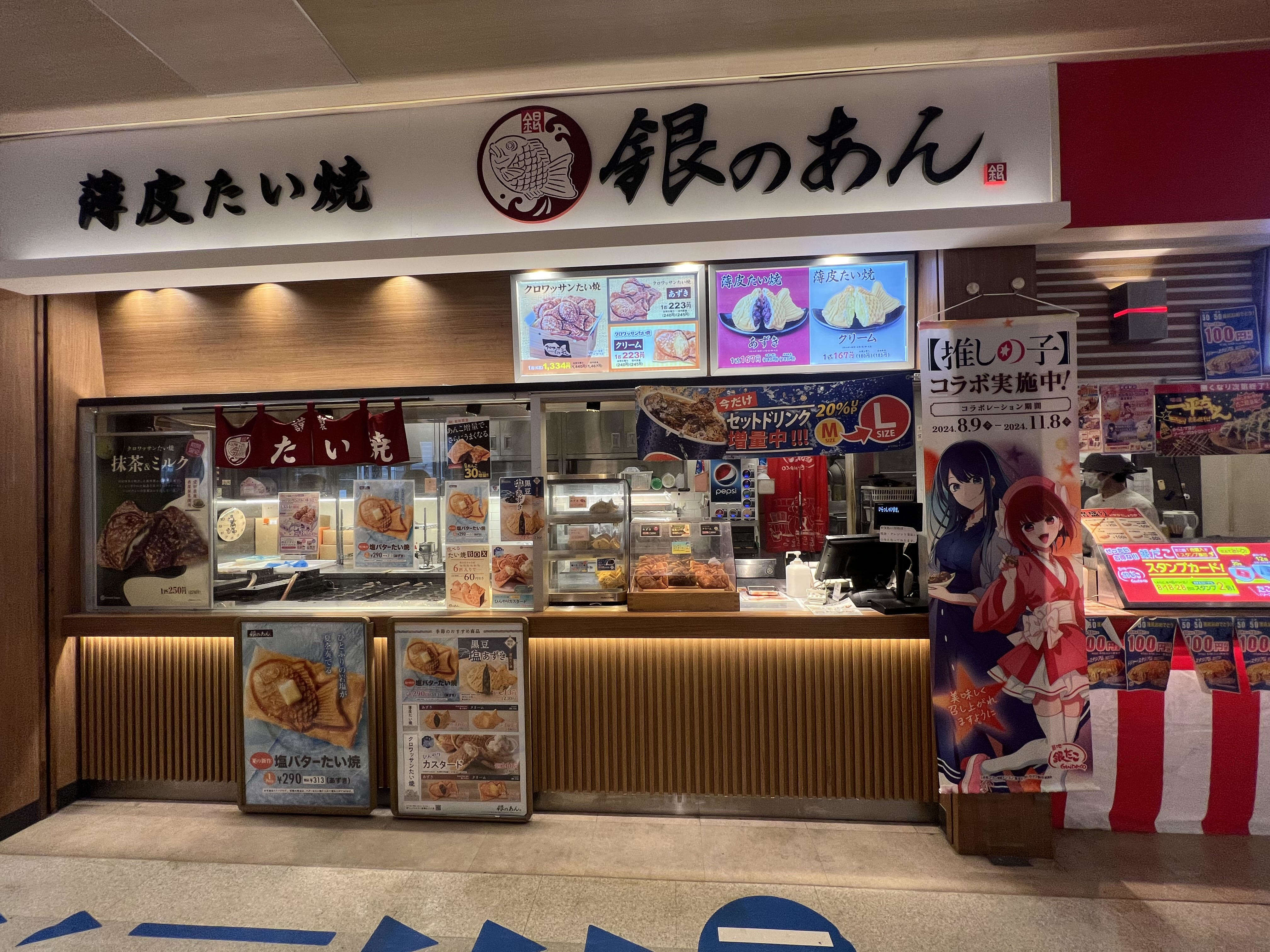 小田急線町田駅西口から2分のところに、丸井町田店があります。その二階に鯛焼き専門店「銀のあん」というお店があります。いつも行列ができていますが、作っている様子も良く見えて、待つのも気になりません。鯛焼きを渡される時に、店員さんが「おいしくお召し上がりください」と言ってくださるのも嬉しいです。
