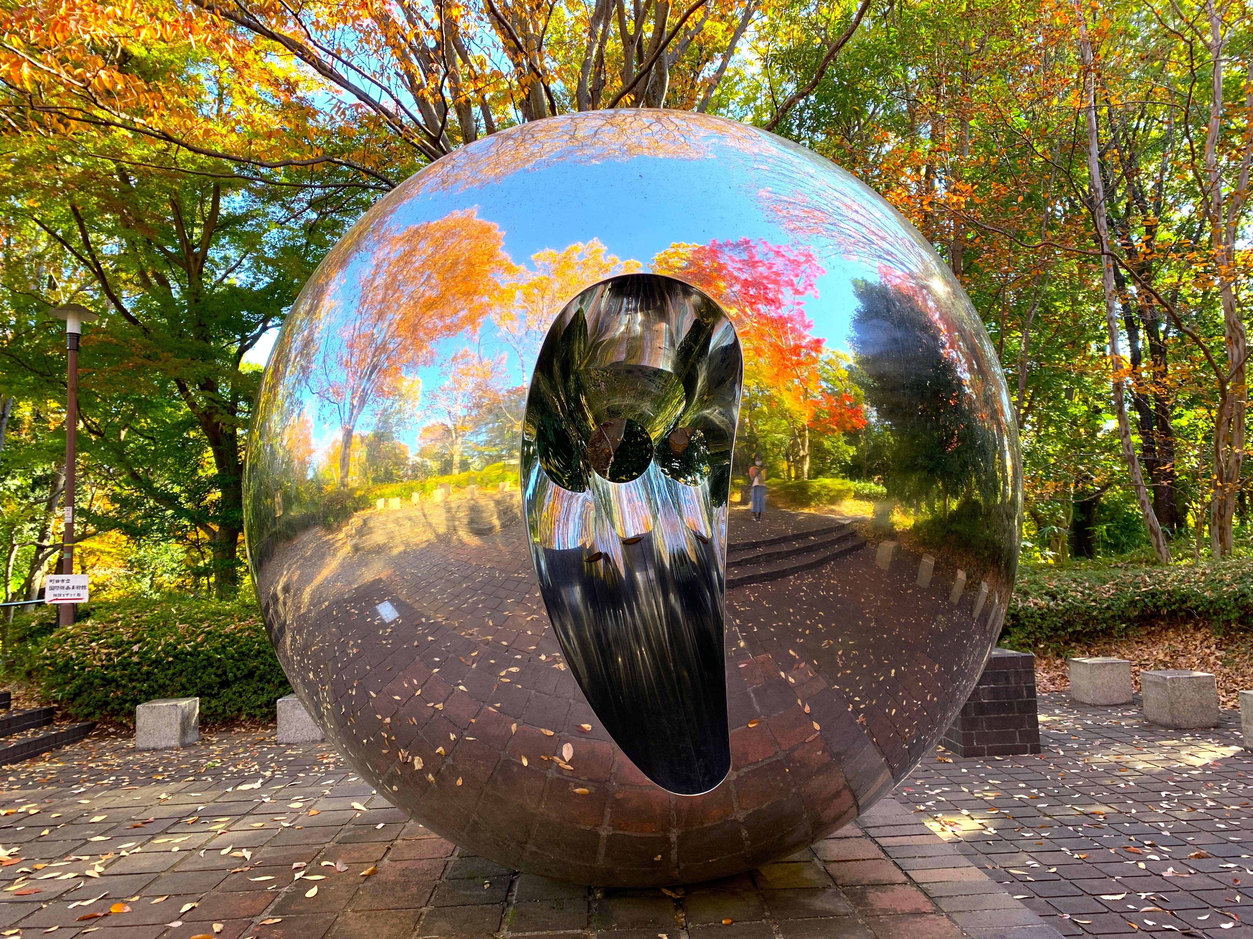 モニュメントに映し出された紅葉がきれいでした。