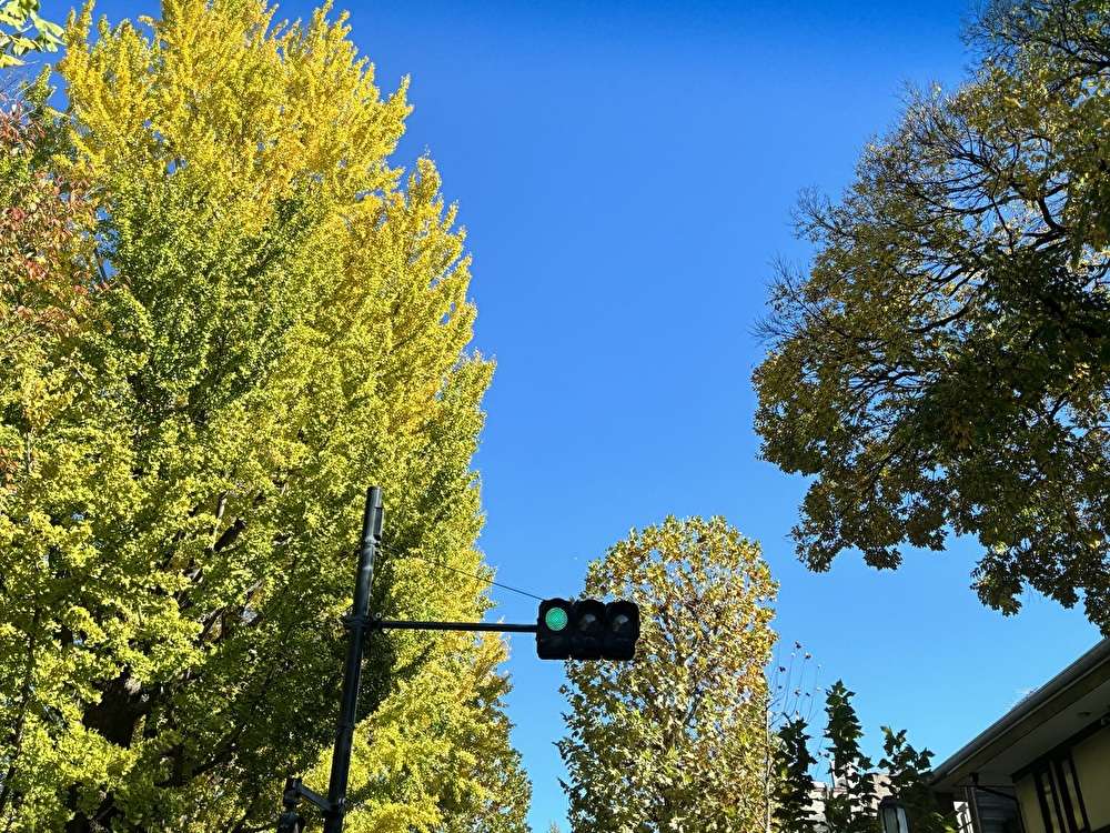 世田谷百景、地域風景資産に選ばれている成城のいちょう並木。先日通りかかったときに綺麗だったので写真を撮りました。青空といちょうの黄色が美しかったです。いちょうはこれからもっともっと黄色に色付いてくるでしょう。空を見上げて散策されてみてはいかがでしょうか。