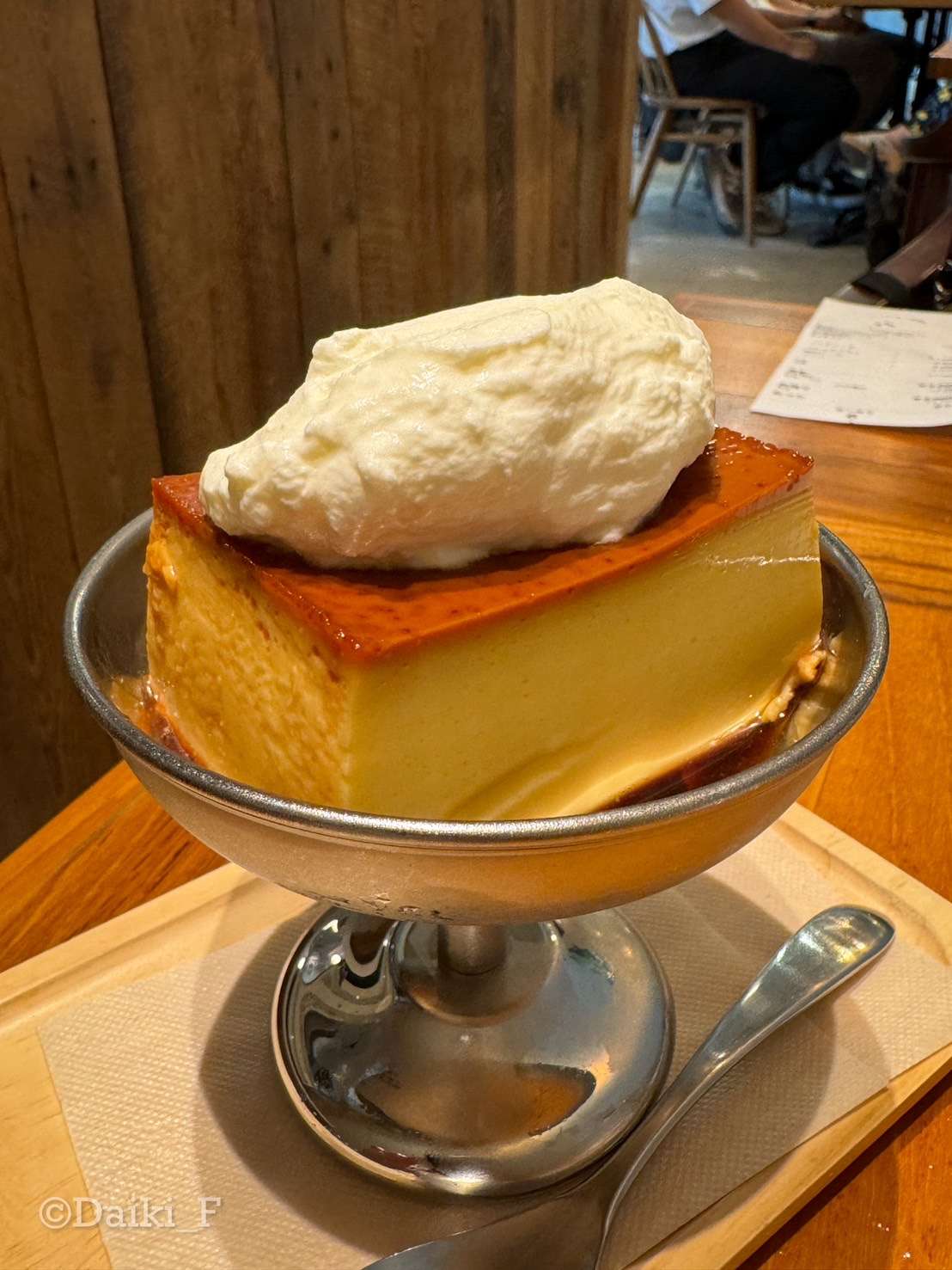 デザートにプリンも注文しました。四角くて、分厚いプリン。こちらはオスカー・ピーターソンの“Satin Doll”のピアノような硬めのタッチ。とはいえ、卵の味も濃厚で、まさしく、これこそが理想のプリンなのではないでしょうか・・?