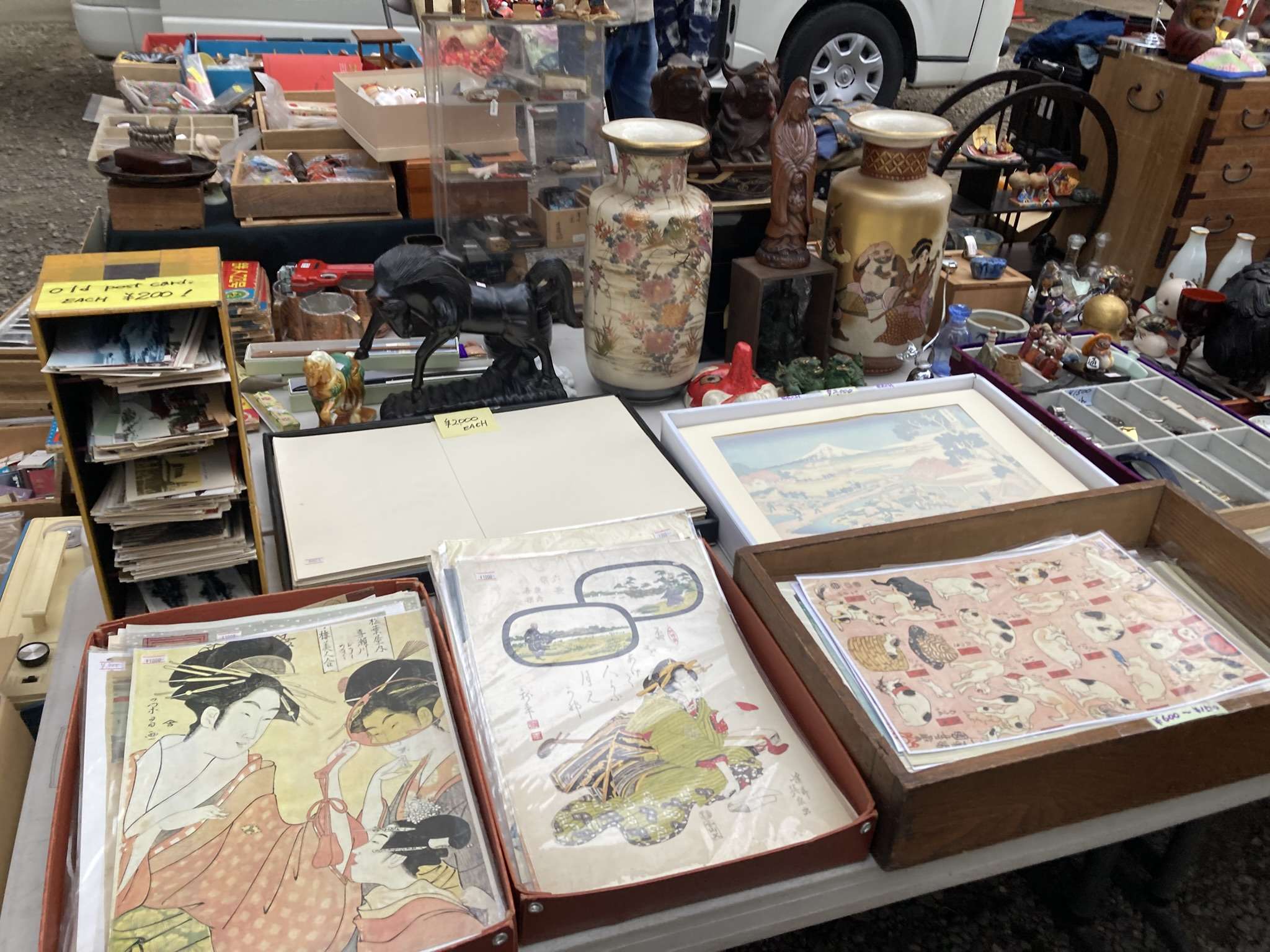 絵画や焼き物・置物等がたくさん並べられており骨董市の雰囲気を楽しめました。