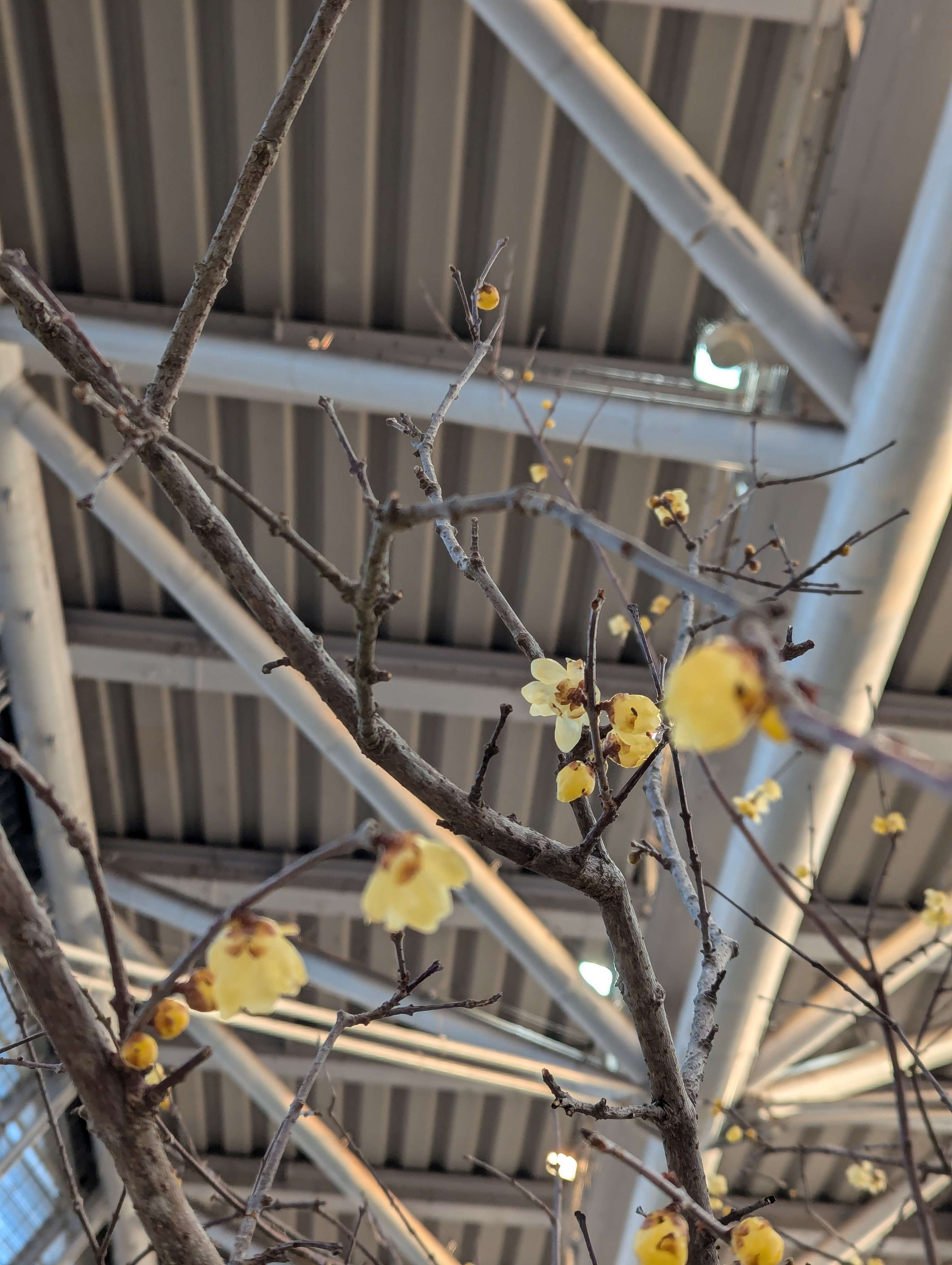 新松田駅のエレベーター前にもロウバイの木が展示されていました。