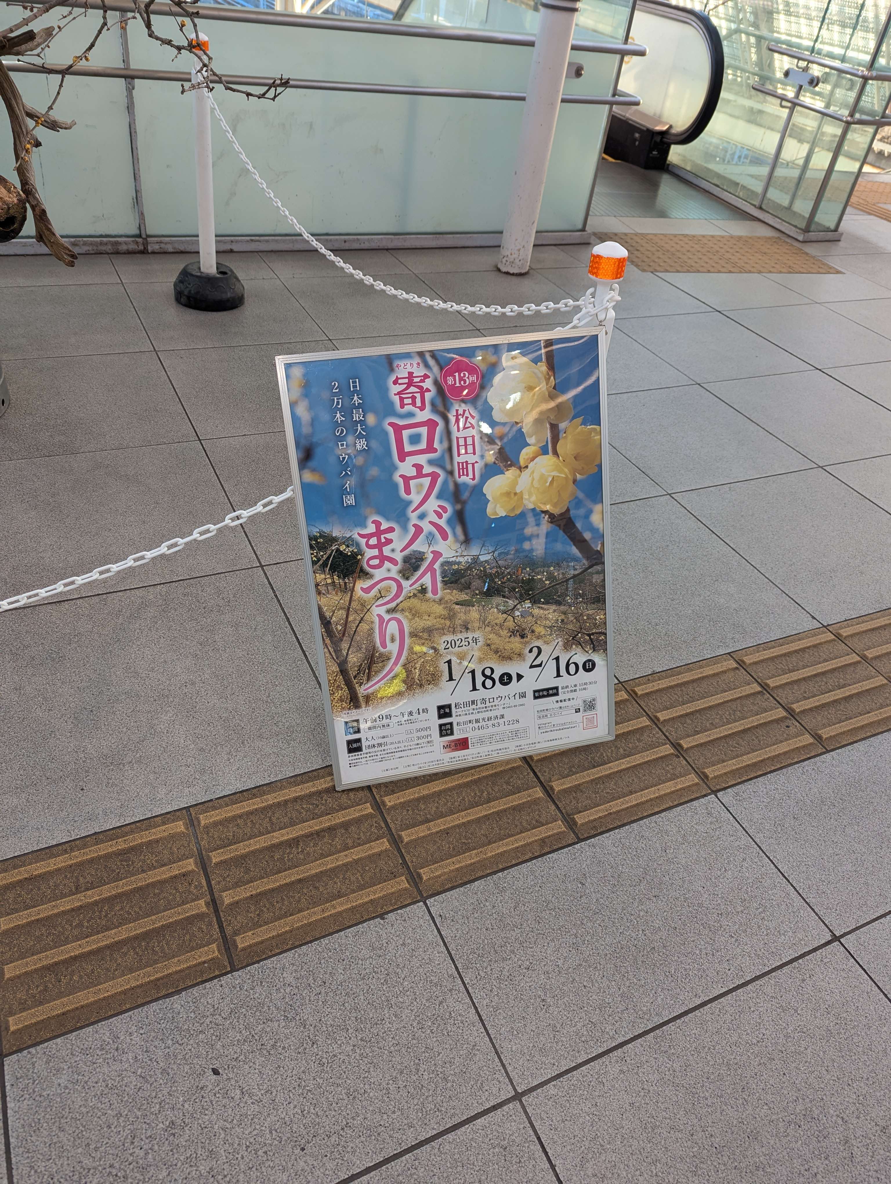 小田原駅、新松田駅構内にロウバイの木が展示されて