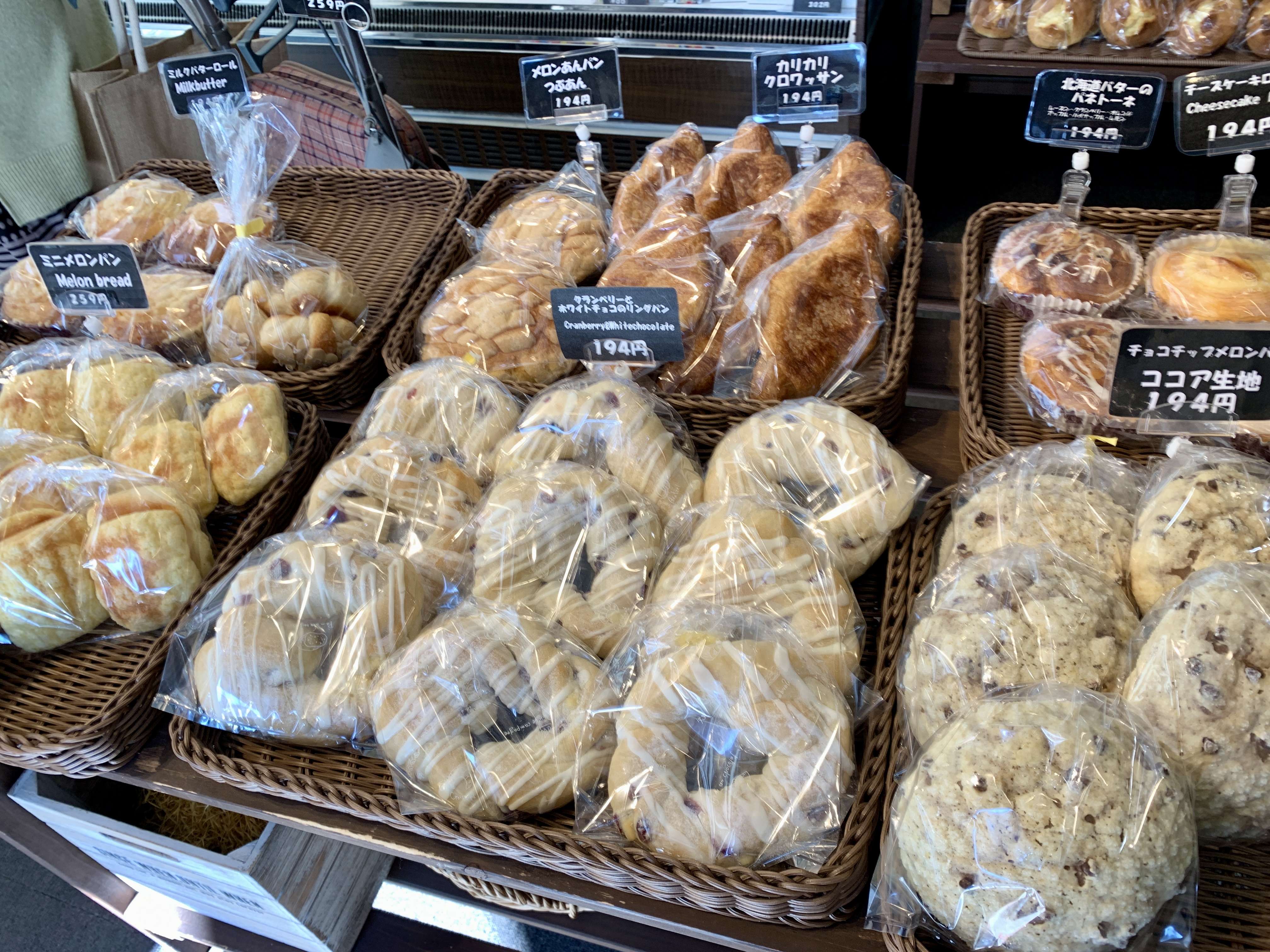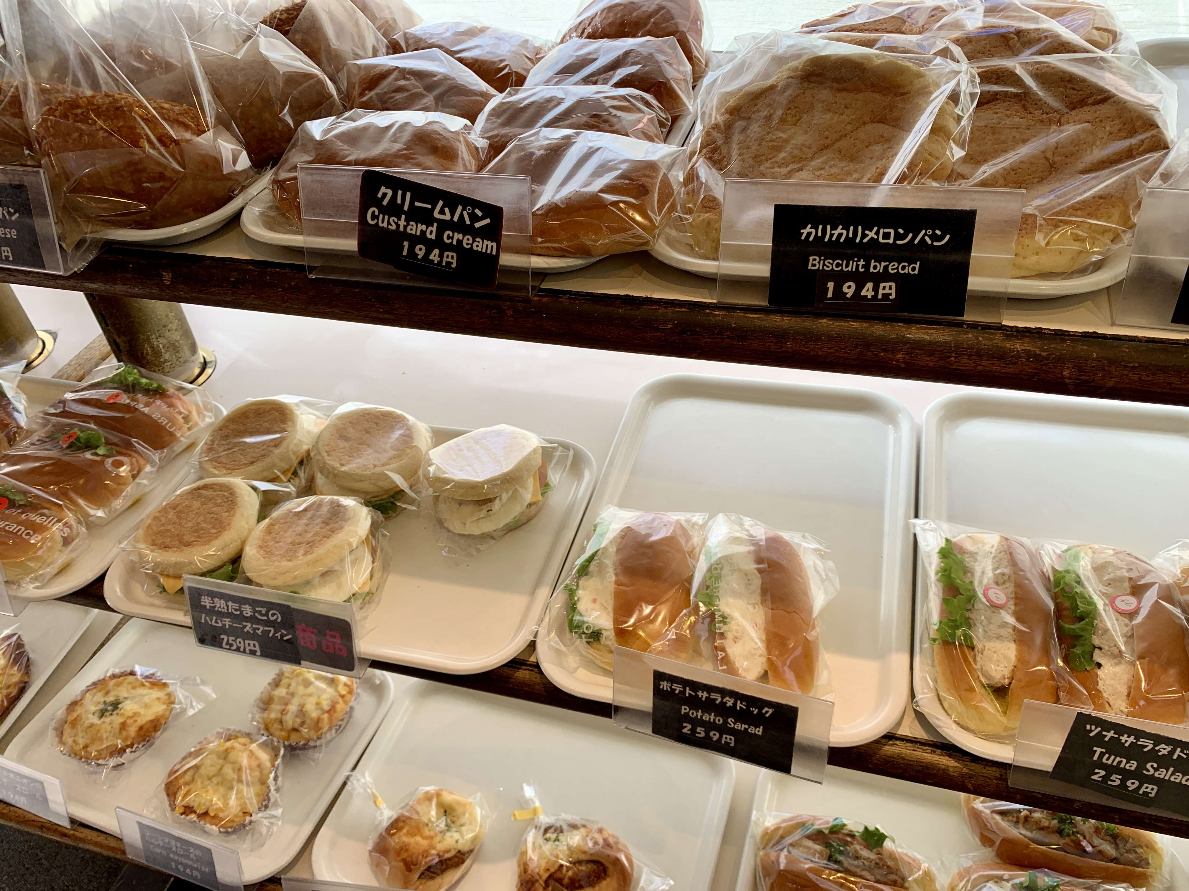 手書きの看板には人情味あふれる文字が並び、パンはどこか懐かしい並び方をしています。