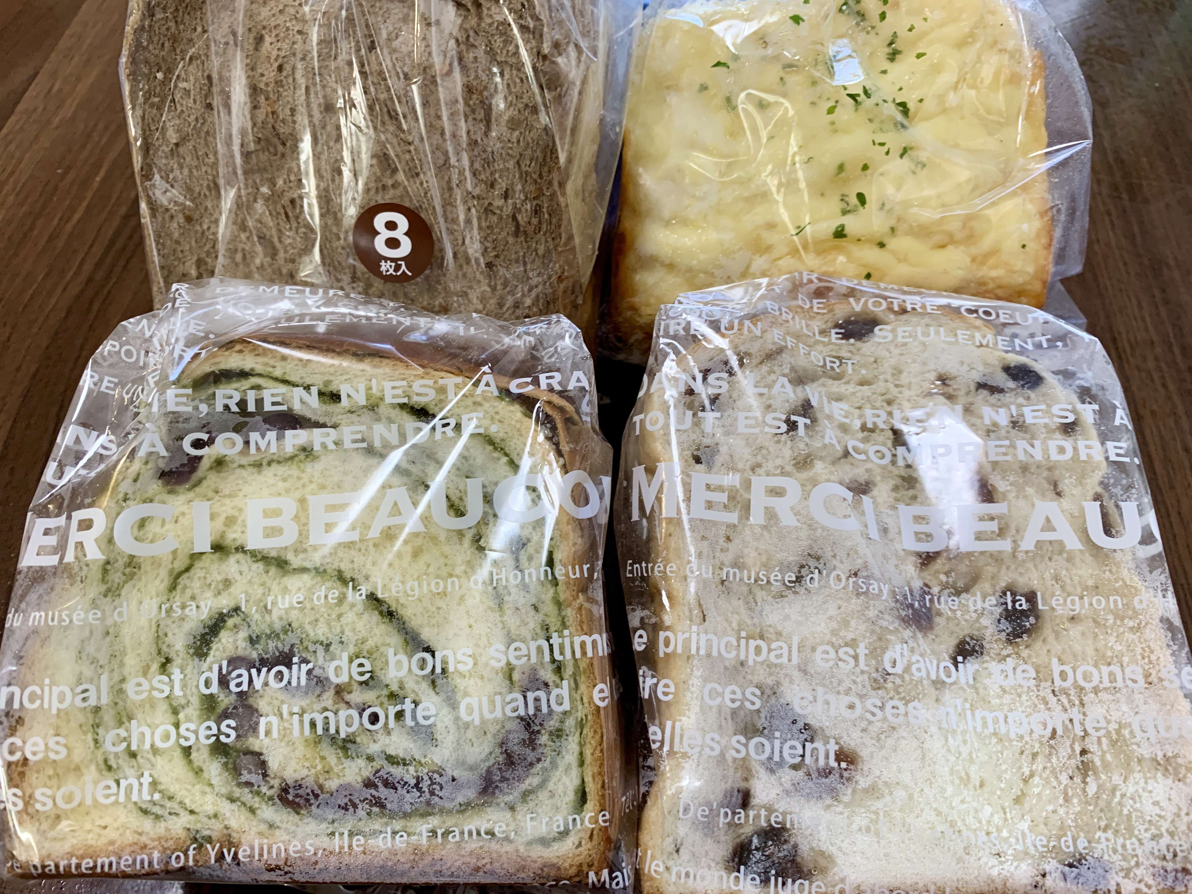 食パン好きの私は、ドイツ食パンとラムレーズン、抹茶食パン、それとオニオンブレッドを購入。