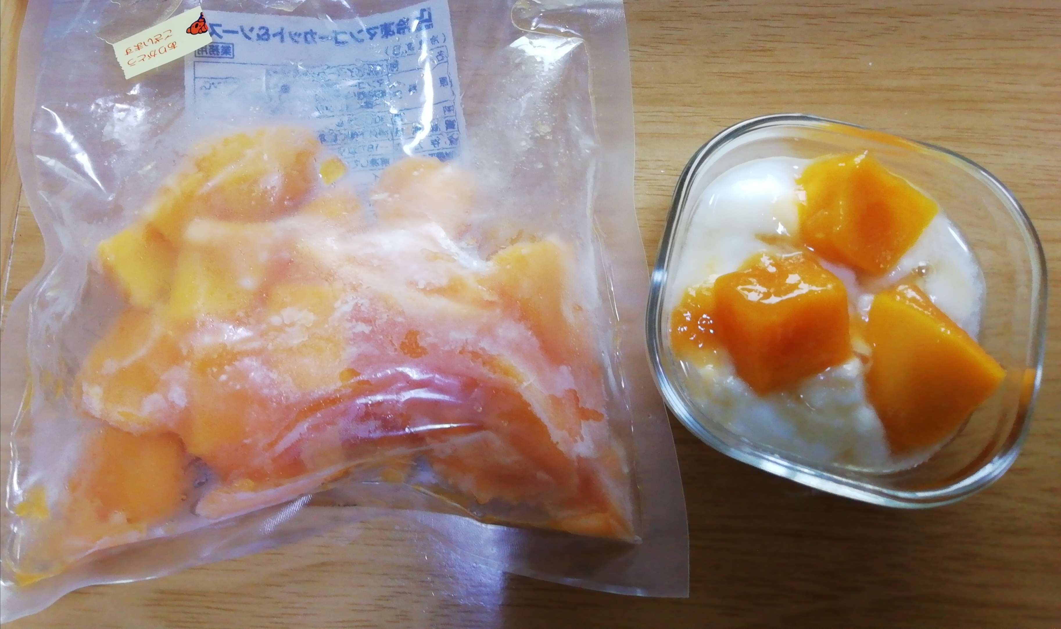 特売で冷凍マンゴーとポテトが売っていました。