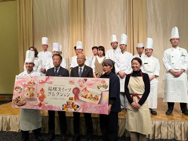 (写真は「箱根スイーツのコレクション 2025」シェフ・パティシエの皆さん、一列目左より2番目水上 秀博(株)小田急箱根 取締役社長, 3番目勝俣 浩行 箱根町長)とのフォトセッション。