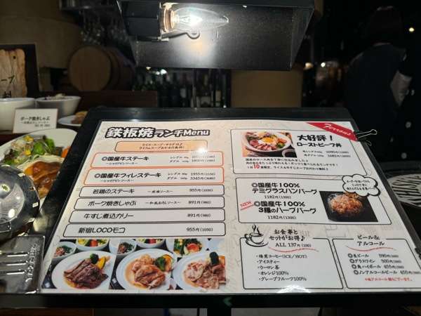 新宿エリアでランチを探していた際、偶然見つけた一軒のお店。ステーキやハンバーグ、カレー、ロコモコなど、バリエーション豊かなメニューが揃っていて、思わず目移りしてしまいました。