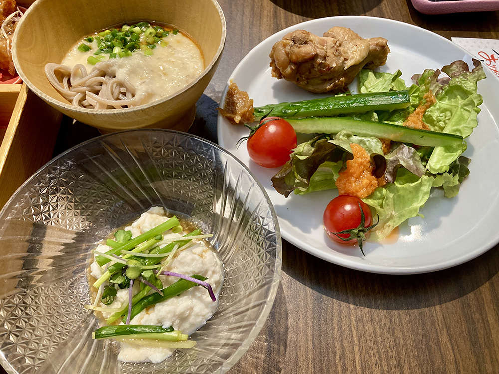 サラダ、お豆腐、麦とろお蕎麦