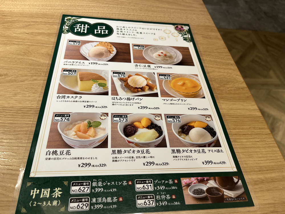 デザートは台湾かき氷(マンゴー)と中国茶(凍頂烏龍茶)を選択しました。