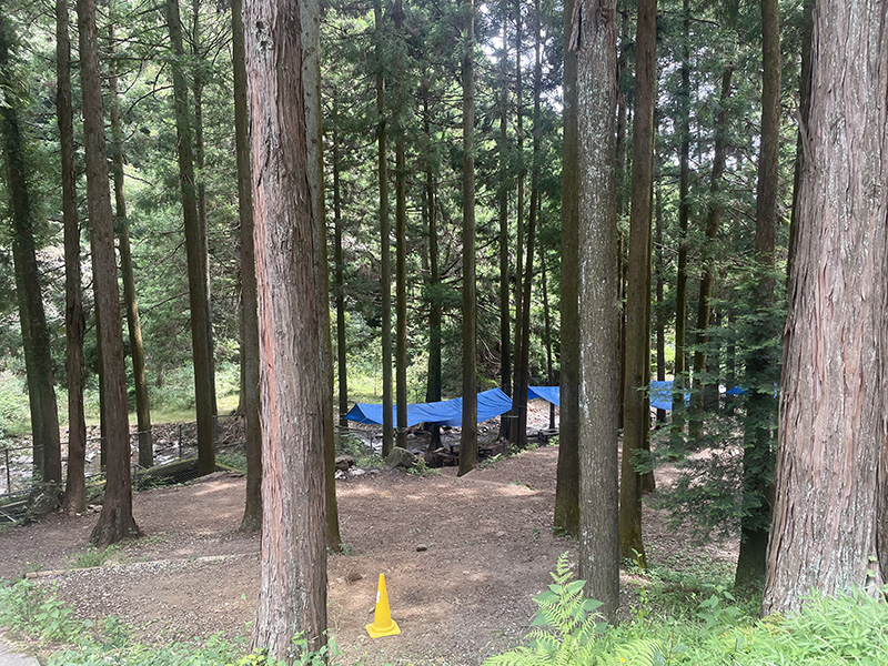 こちらは川に隣接し、木々に囲まれたキャンプ場です。