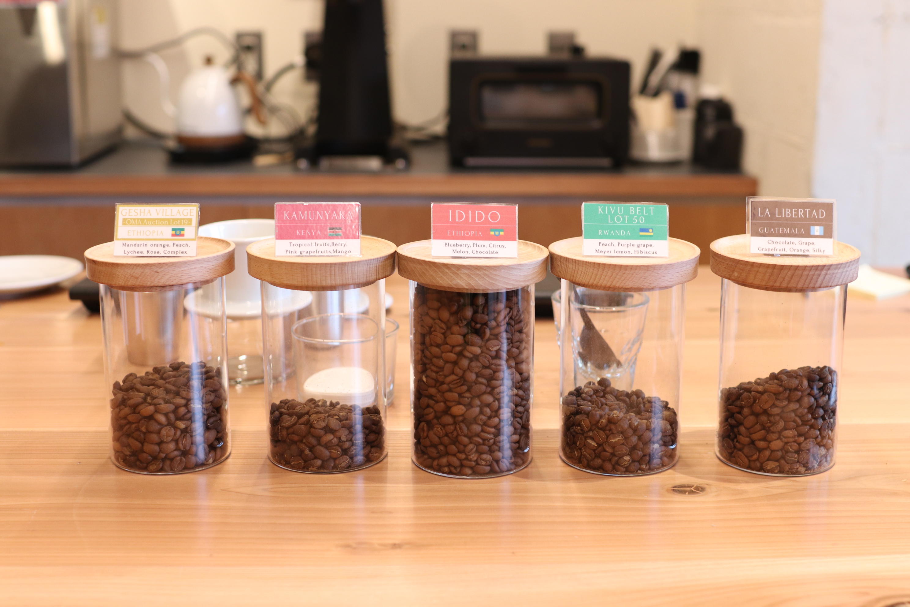 カウンターに並んでいて、この中から好みの豆を選んでハンドドリップしてくれてその場で飲むことができます。