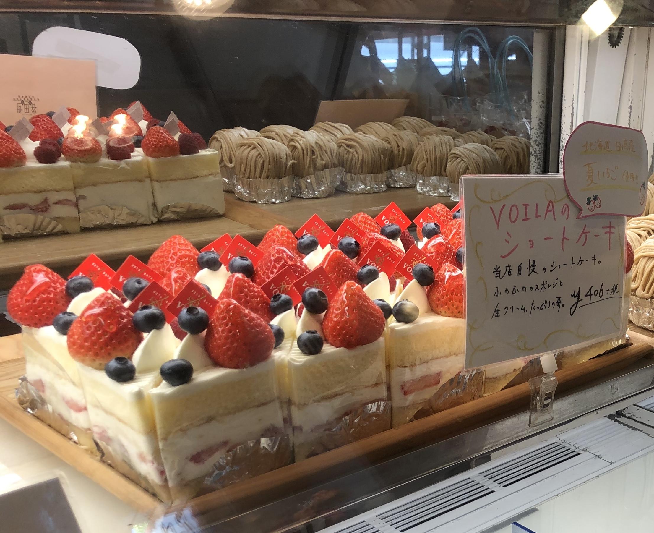 ショーケースには定番のショートケーキや旬の果物のケーキがキラキラ宝石のように並んでいます。