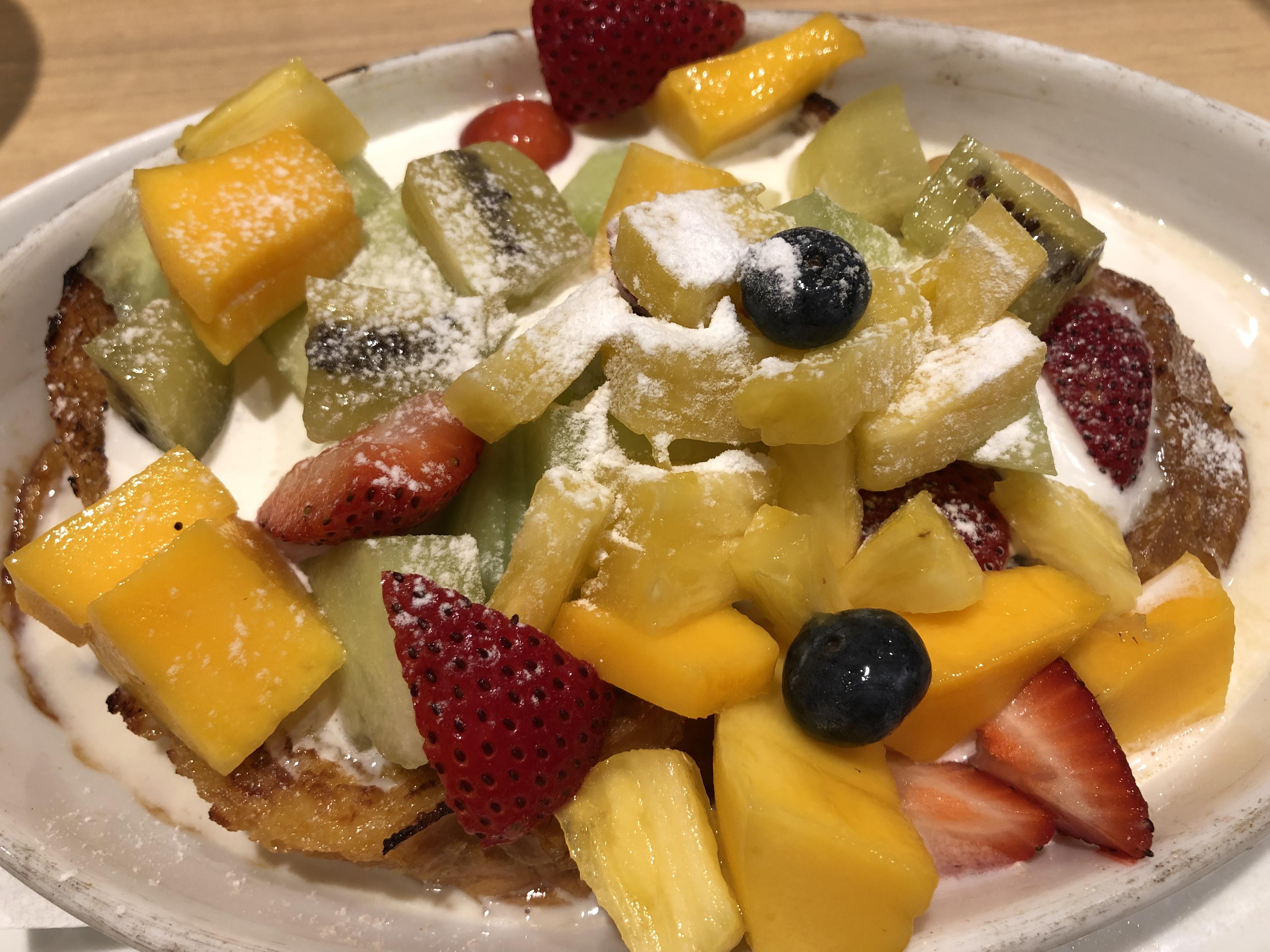 スイーツはもちろん、パスタやハンバーグなどメイン料理も充実しており、もれなくフルーツが付いてきます。