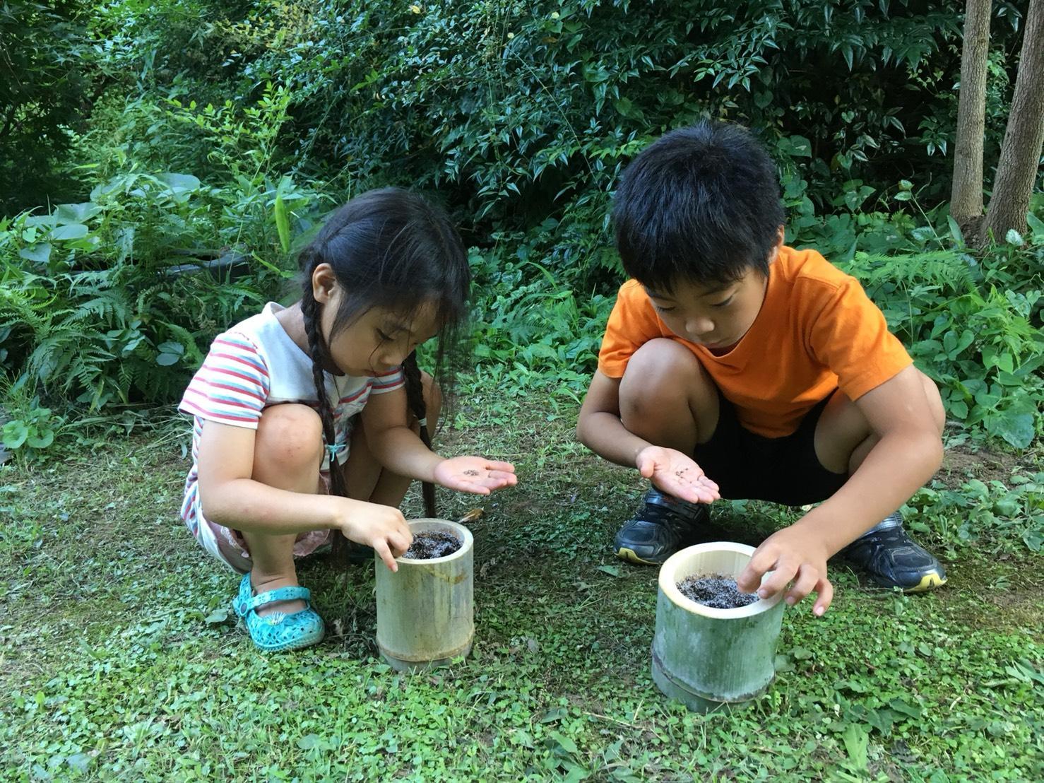 麻生区古沢にある、いのうえのうえんさんのご協力をいただき、竹のプランターで野菜を育てます。