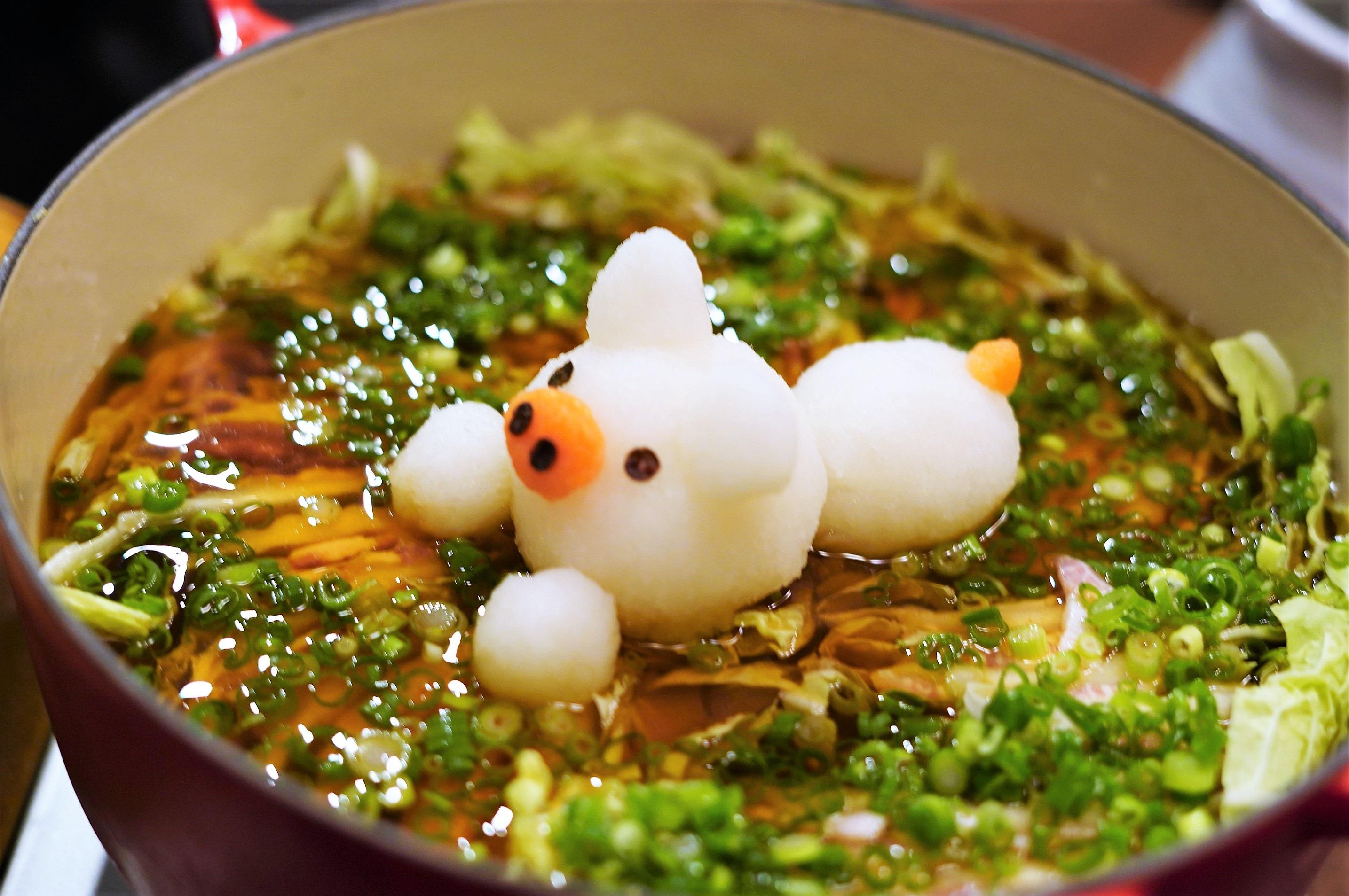 可愛すぎて食べられない豚の大根おろしアート鍋