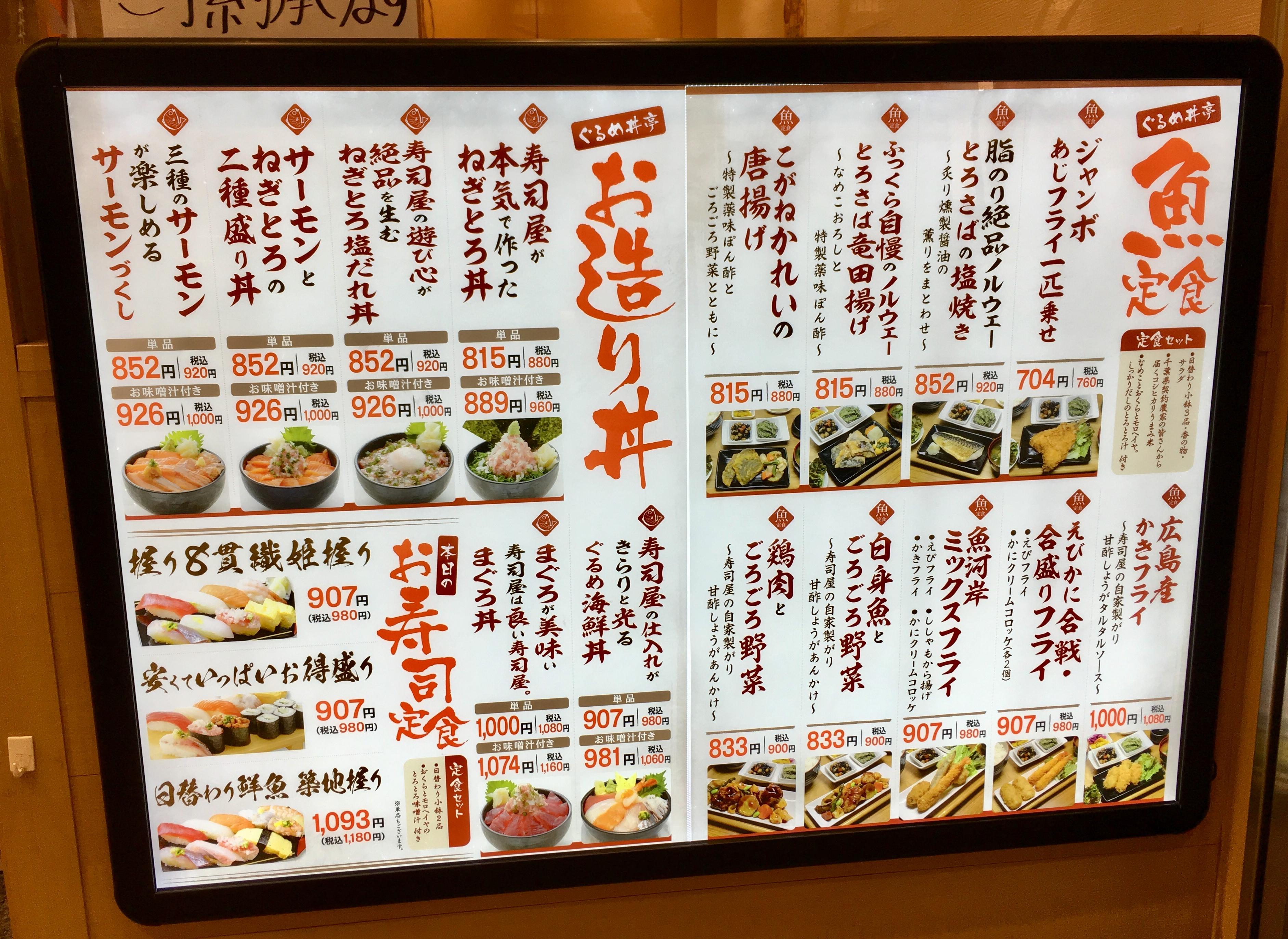 お寿司や丼物の種類は豊富です。値段は買いやすい価格帯です。
