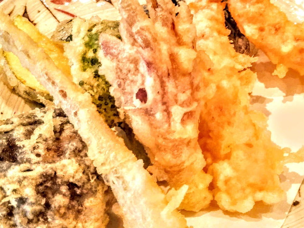 太白ごま油で揚げた天ぷらは衣がサクッとして、