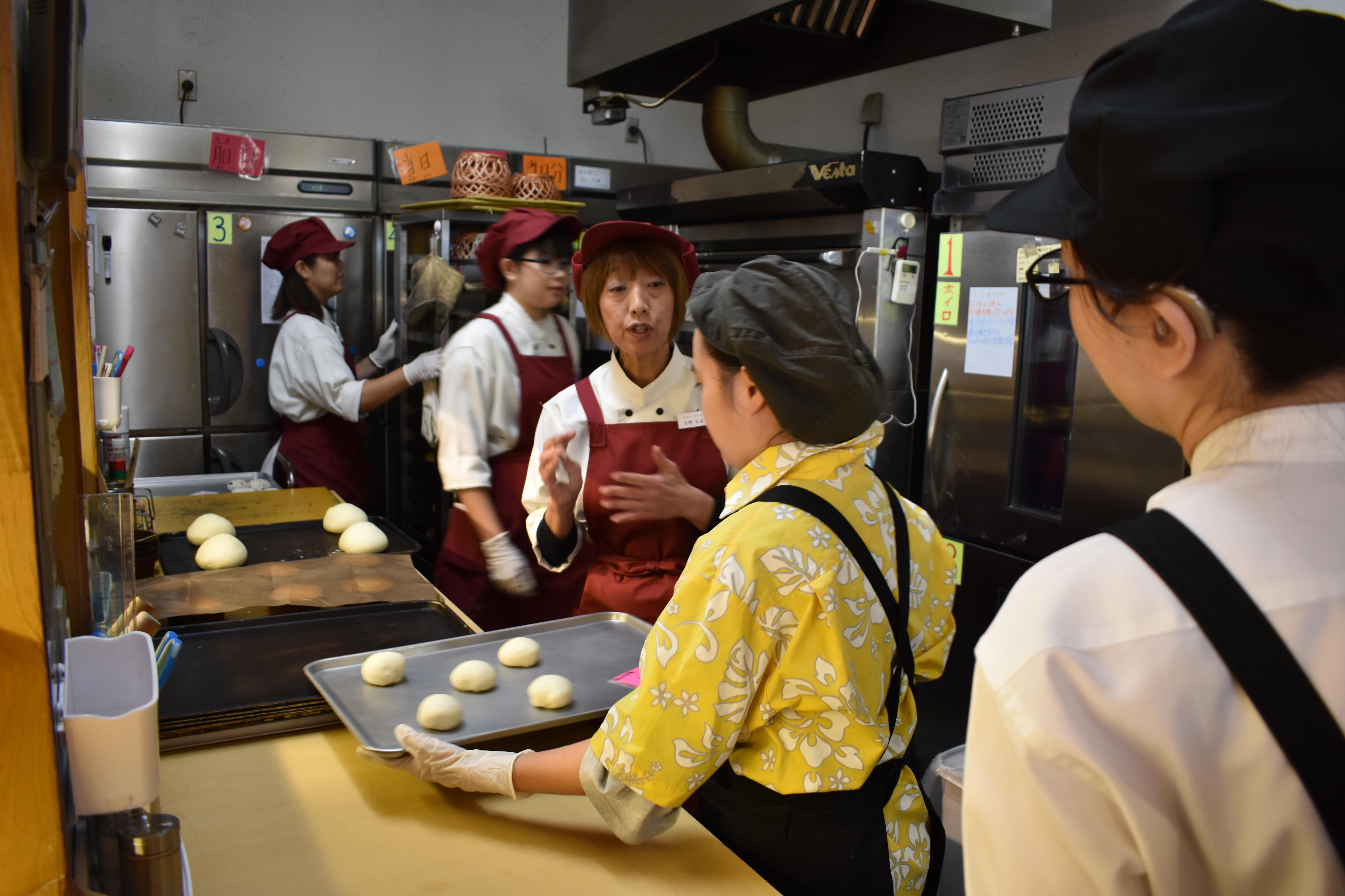 障がい者の就労継続支援事業所としても機能する同店で、約30人のスタッフを束ね、パン作り、店以外の販売等も含め、早朝から精力的にこなし、1年のうち362日、店を稼働します。