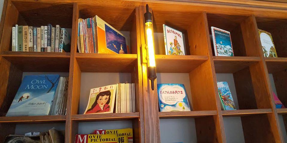 地元の書店・古書店のご協力を得て壁一面に文学、絵本、洋書、アートの本までお洒落な本も並び、どの本の扉を開けてみようかと迷う嬉しさ。