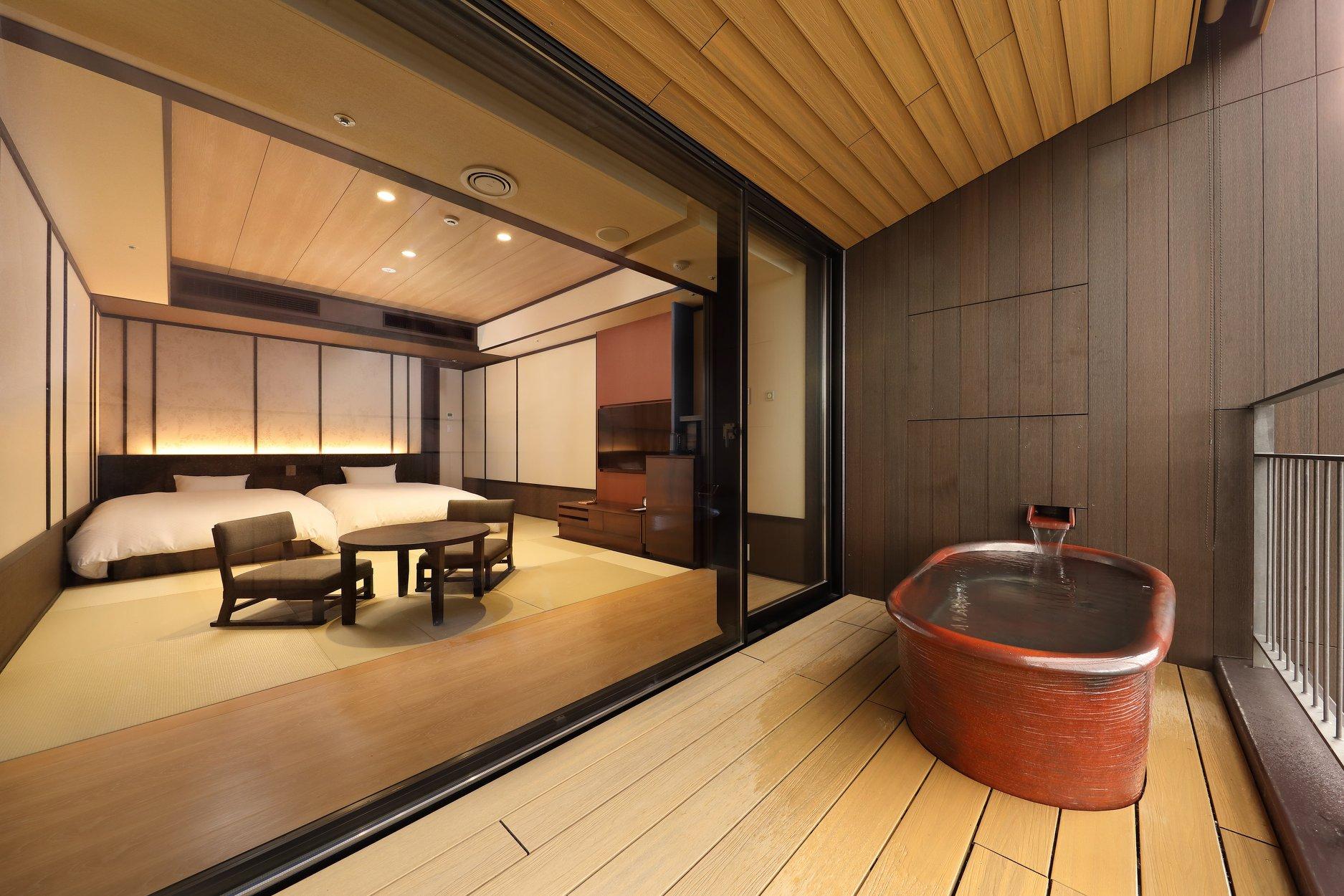 天悠は、全室温泉露天風呂付きで、プライベートな空間でも箱根ビューをひとり占め!