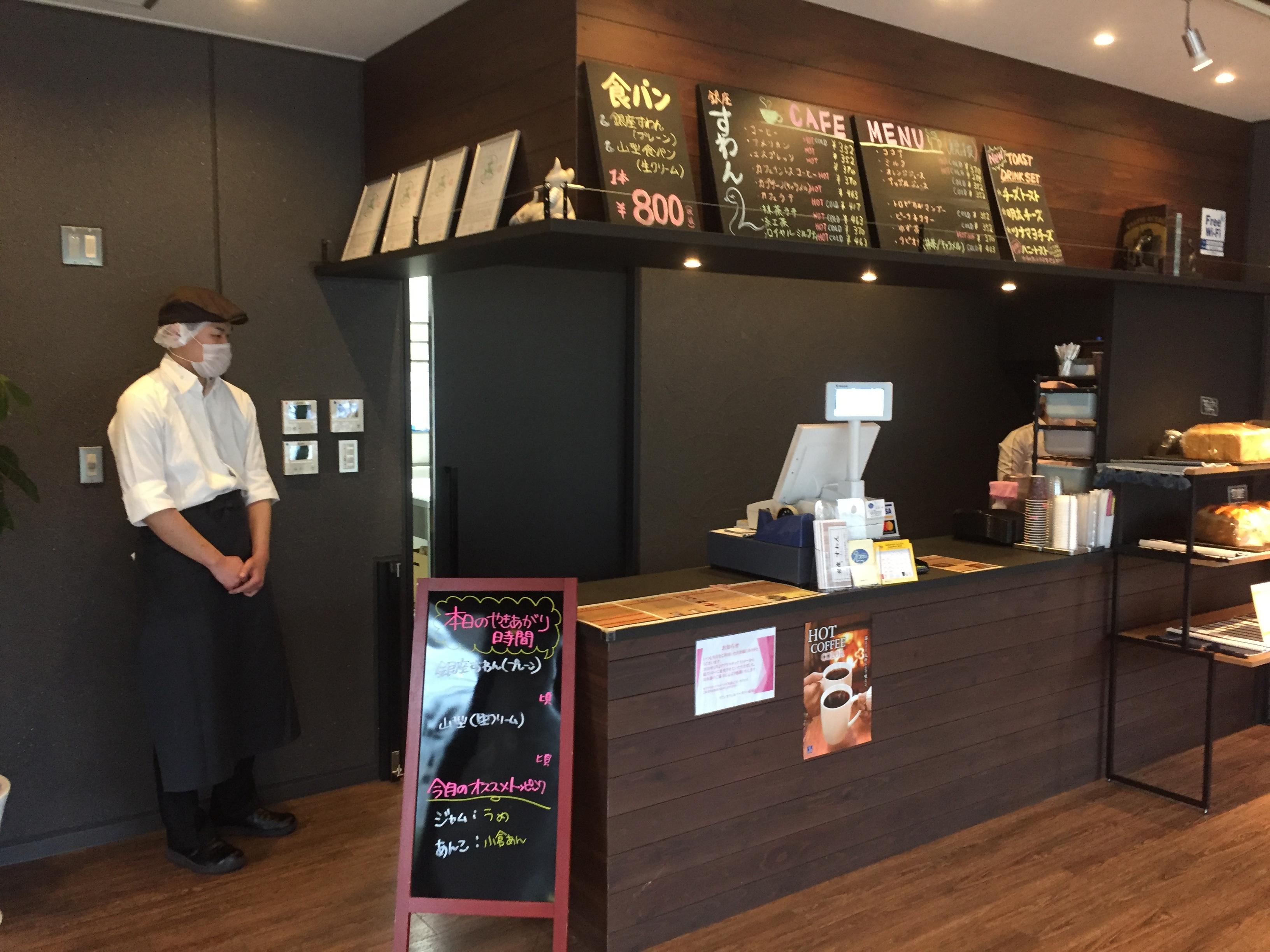 シンプルですが小綺麗な外観で、店内へと誘われます。お店は高級食パンの専門店で、食パンの販売コーナーとカフェに分かれています。