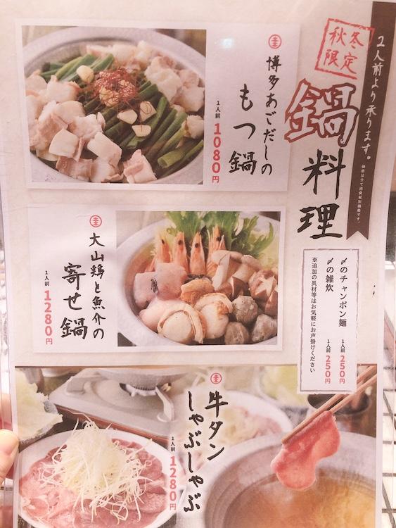賑わっている理由がわかります!お鍋もいくつか種類があり、もつ鍋を食べましてがとてもおいしかったです。シメはちゃんぽん麺がオススメです!