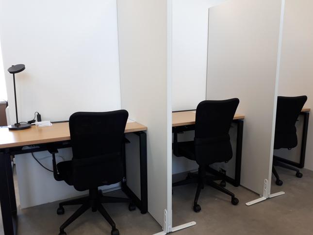 明るく落ち着いた空間で、時差通勤やテレワーク拠点、学習スペースとしてお使いいただいております。