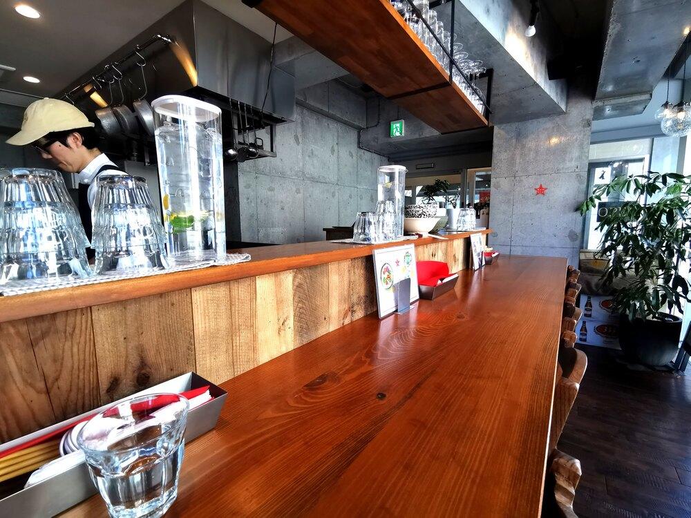 店内は「コ」の字型にカウンターが設置されており、目の前でオーナーシェフが料理するライブ感も魅力の一つ。