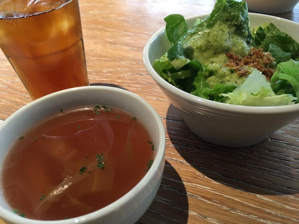 スープもおかわり自由で、地場野菜たっぷりでとても食べ応えがありました。