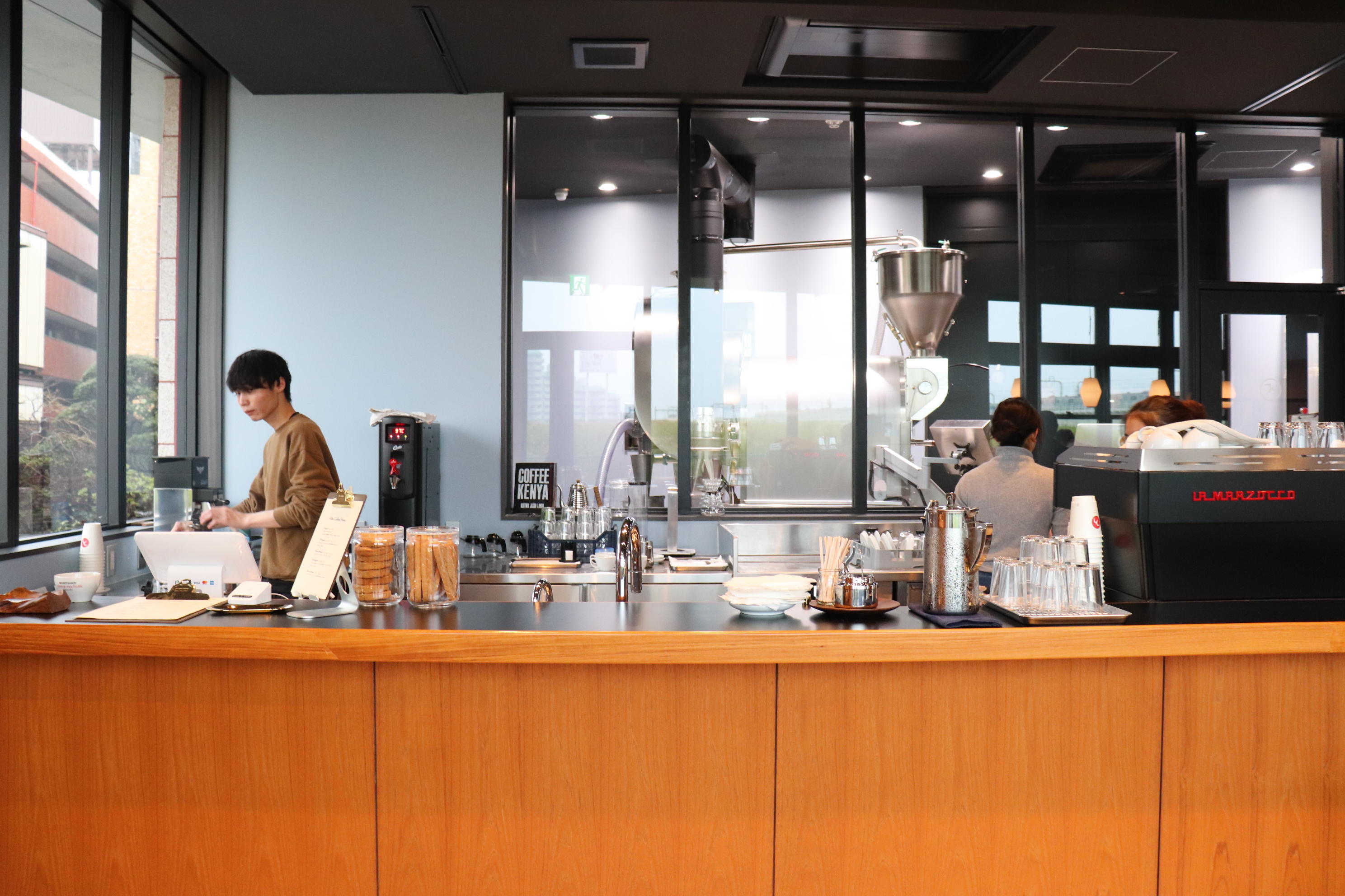 店内に入ると広いオープンキッチンそして奥には大きな焙煎機があります。