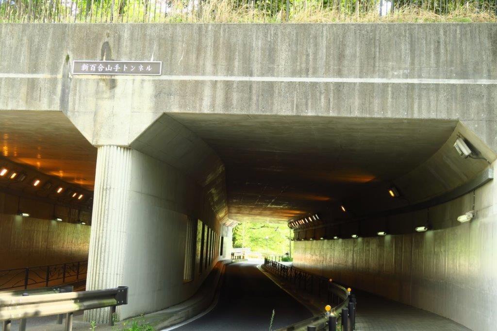 新百合山手中央通りから新百合山手トンネルを抜けて麻生郵便局までの新百合山手西通り。