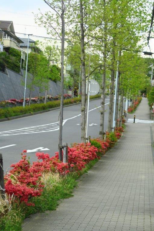 歩道を含め両側にツツジなどが咲き誇りまさに春から初夏の雰囲気を感じさせてくれる快適な散策路です。