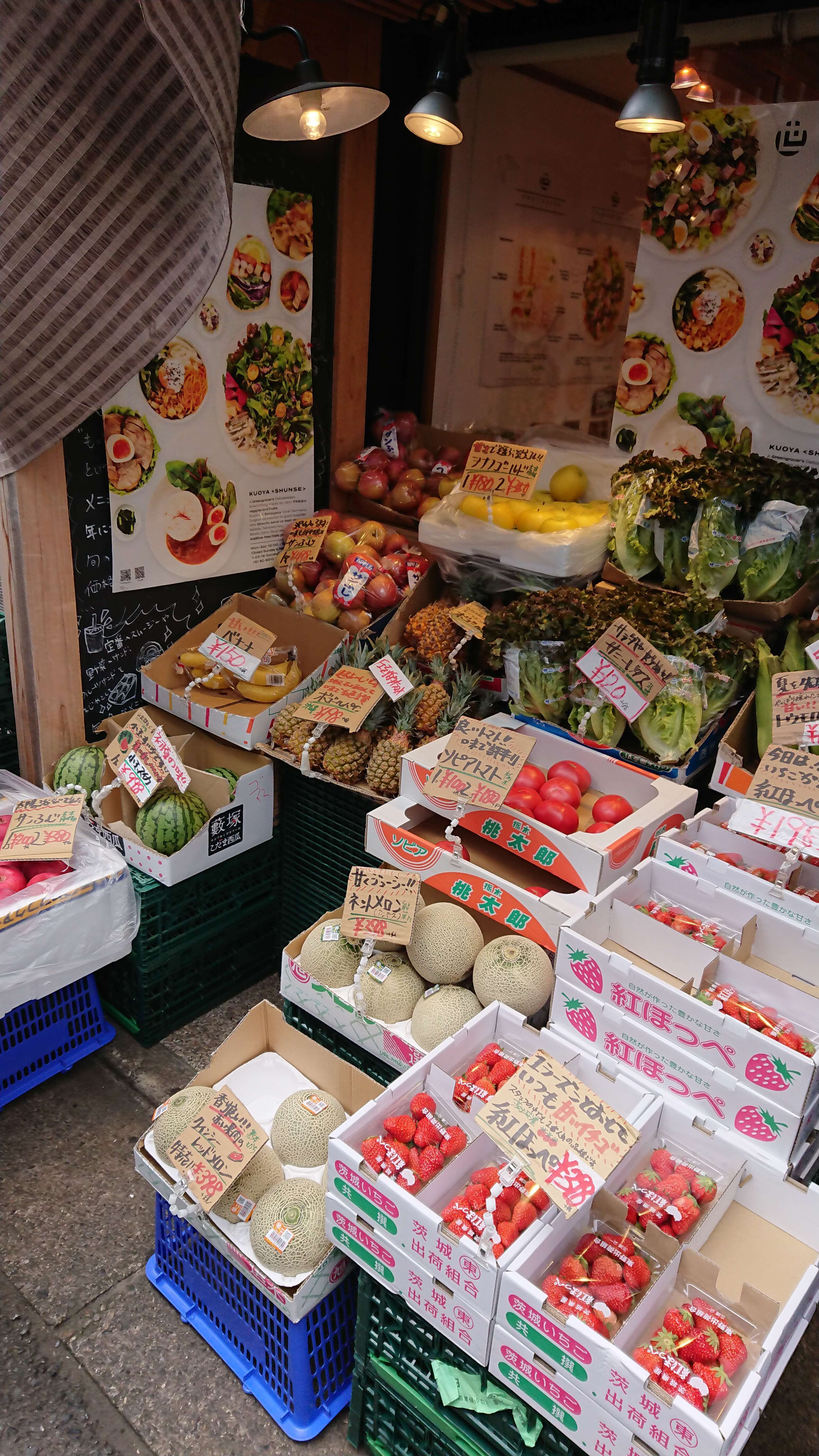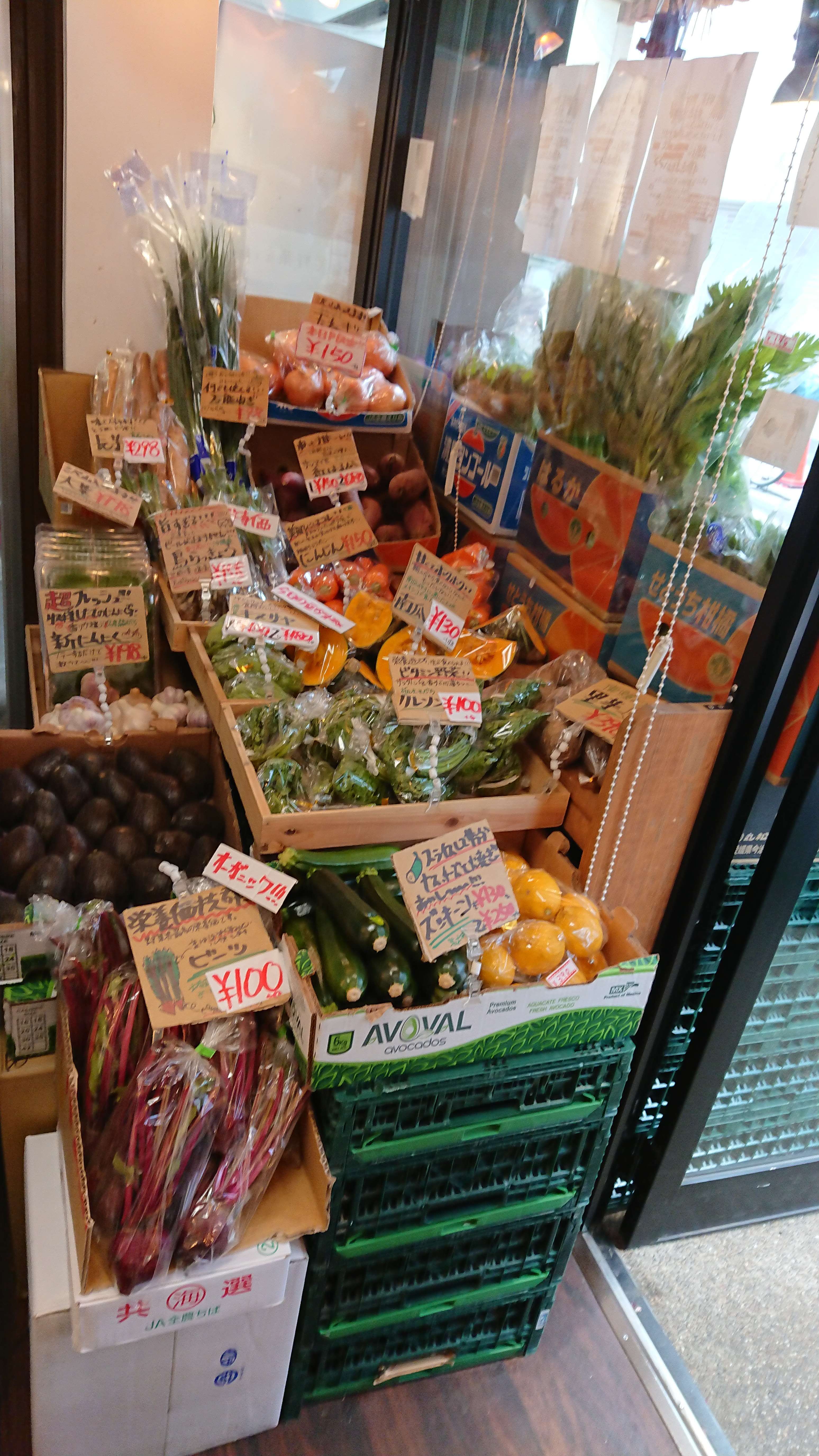 お店の外にも中にも野菜と果物がぎっしりと陳列されています。