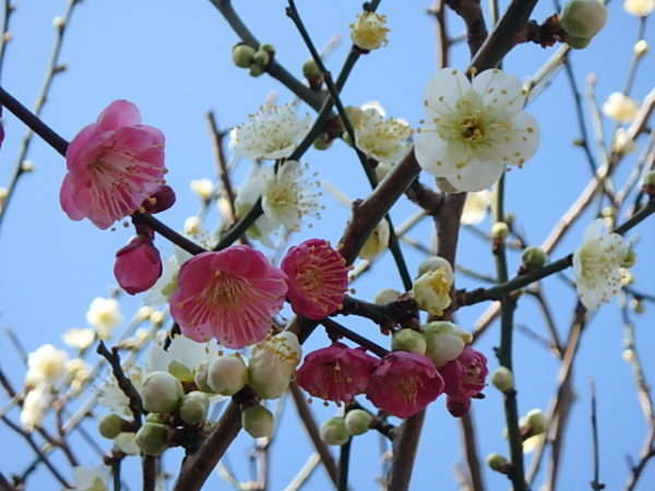 町田天満宮の境内には紅梅、白梅、しだれ梅などさまざまな種類の梅の花が植えられている梅林があります。