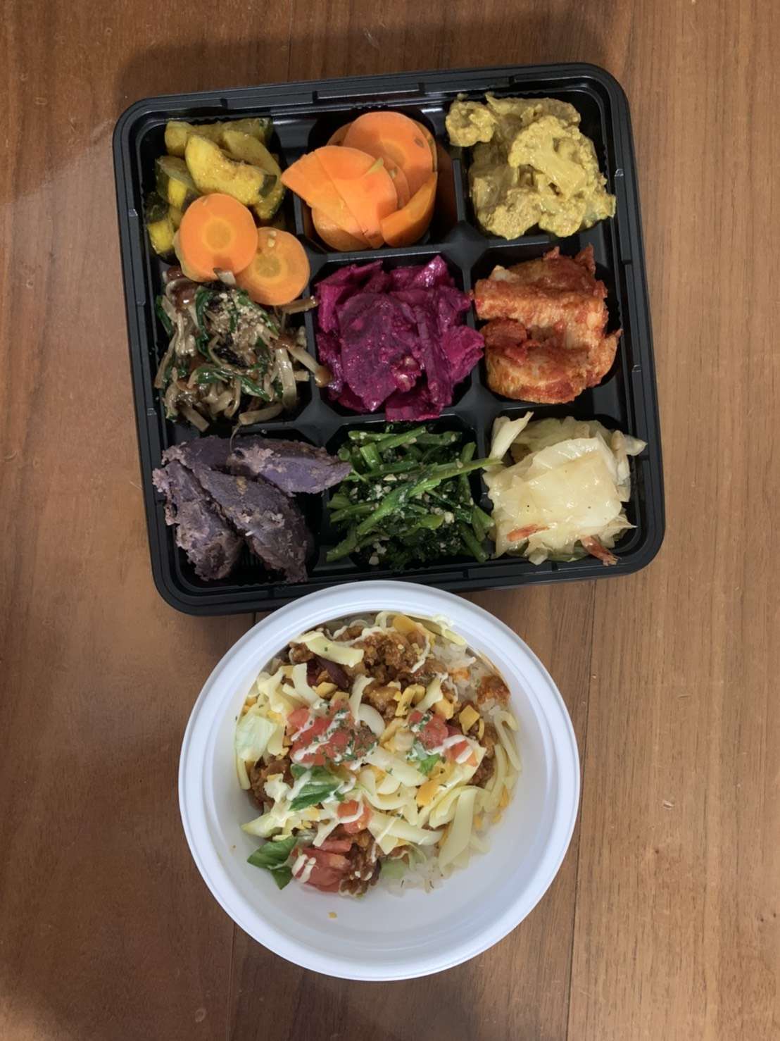 コロナでステイホーム中に、お野菜が沢山のお料理をお届けしていただきました。
