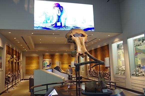 まず展示スペースに入ると、迫力満点のマンモスの化石があらわれます。
