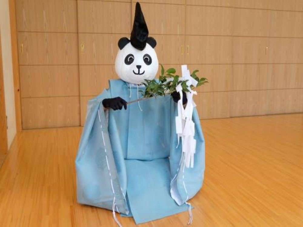 パンダが神職者の装束を着たようなキャラクターで、神社の境内でもたまに見かけることができます。