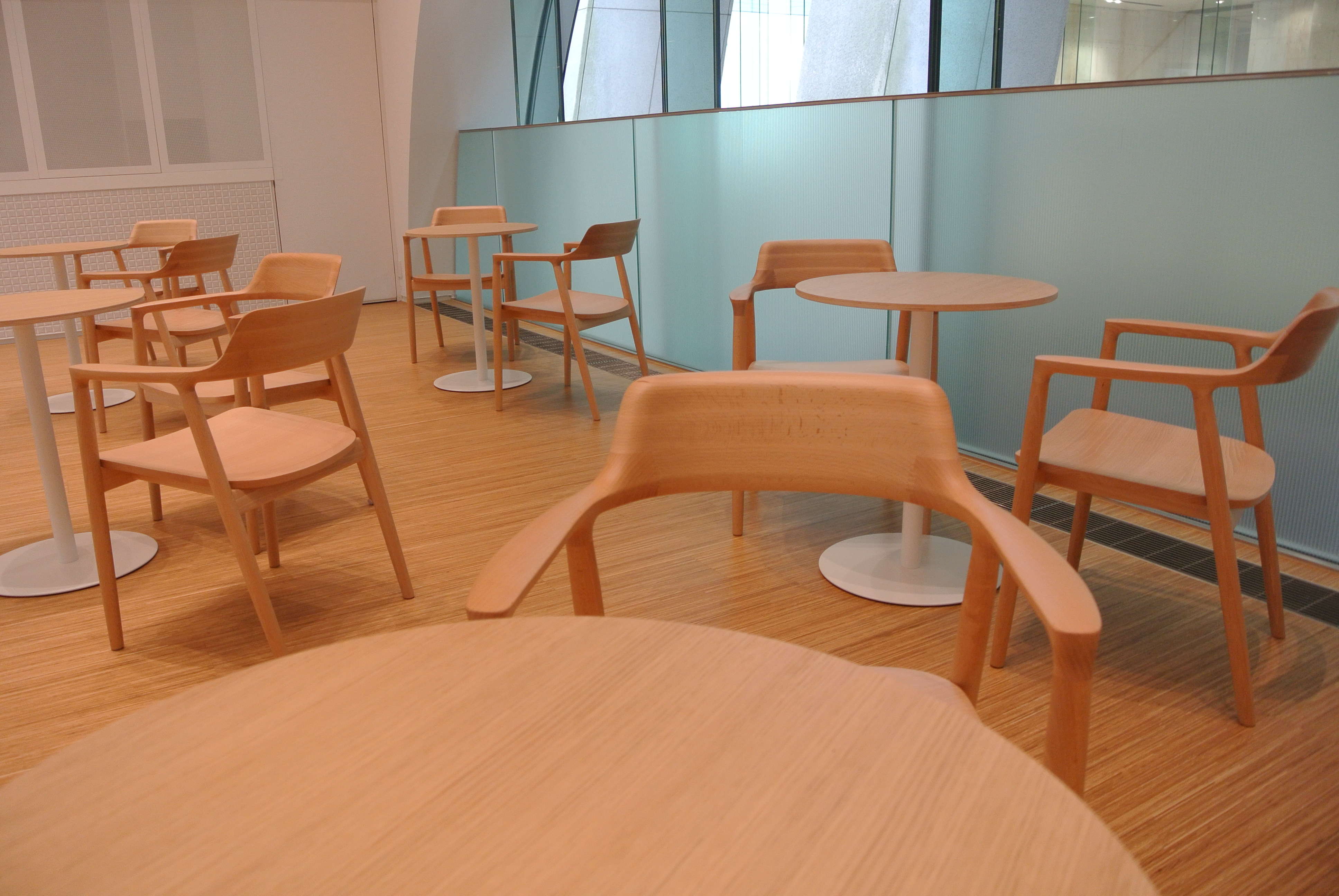 入ってすぐ1階と2階のラウンジの天井には木が使用されいます。